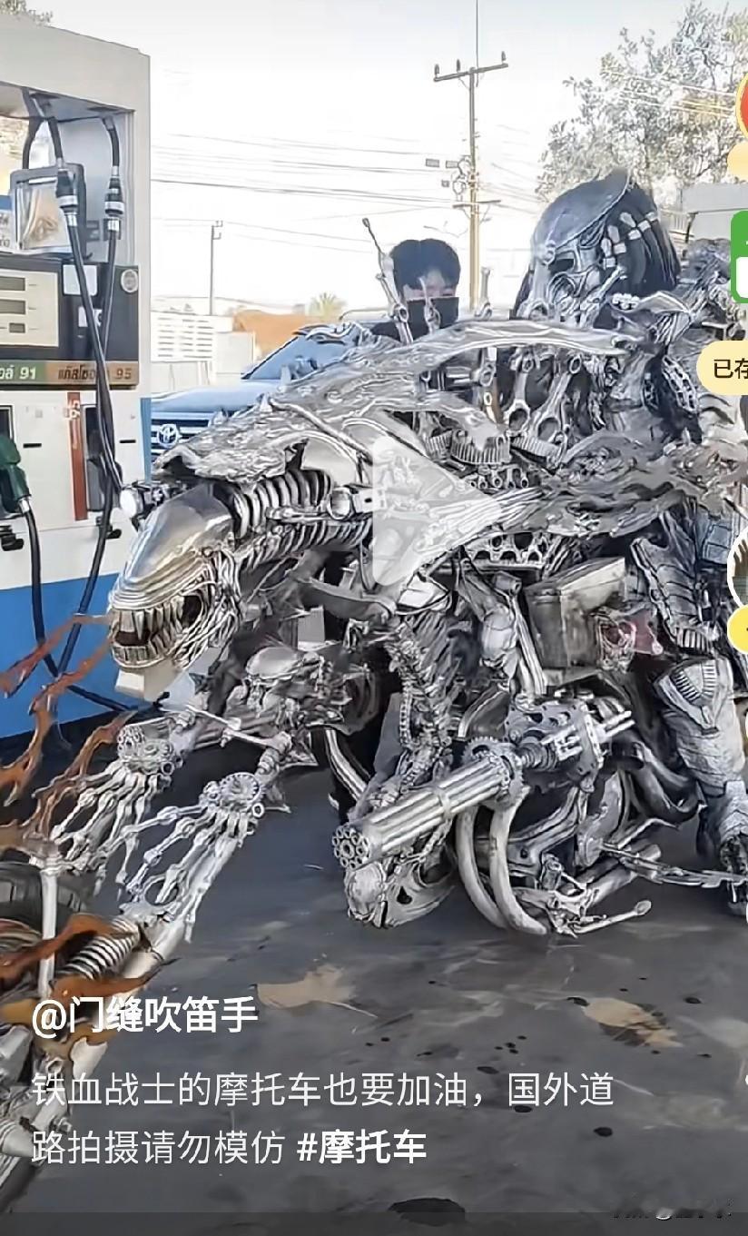 这样的摩托车改装也能上路吗?号称铁血战士。 准备加油在加油站。 奇形古怪啊! 这是网上看到国外摩托车改装骑行者。 要是在中国,肯定不行。 首先这么行套穿在身上,一定不安全,也不方便。 感觉像铝材料的。 又重,又不好驾驶。 完全是博眼球吧! 国外的骑行车真的无奇不有。 摩托车骑行改装 爆改的摩托车