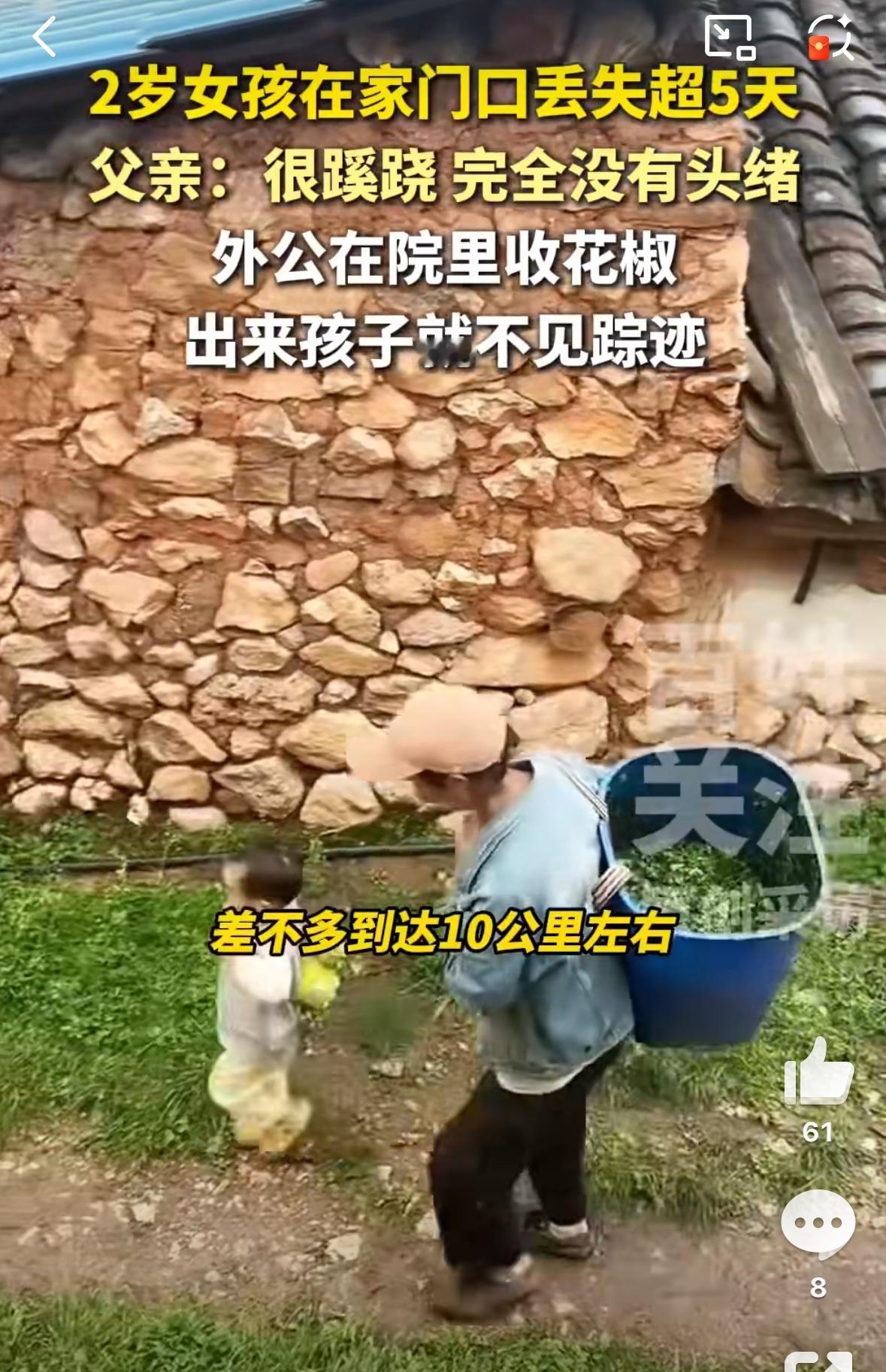 2岁女童家门口消失十多天!上百人搜救竟毫无线索,妈妈含泪呼唤:朵朵快回家 “就