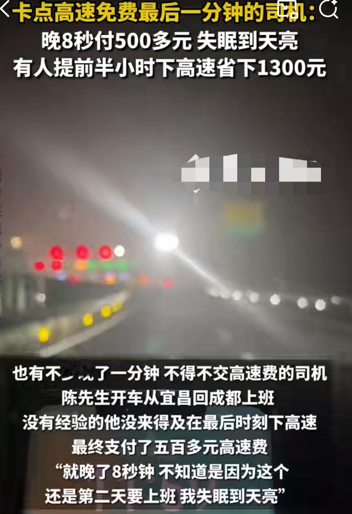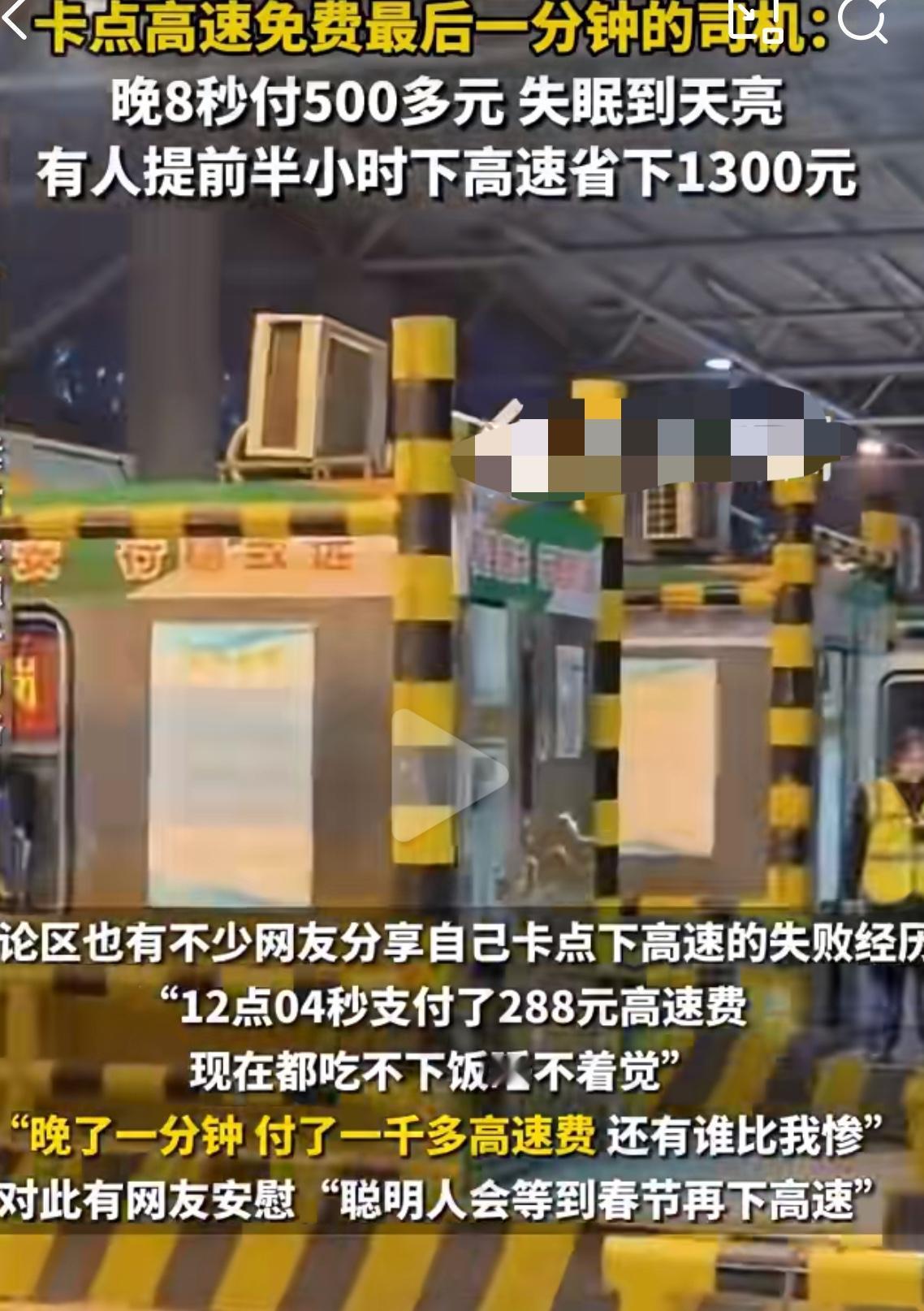 8秒钟五百元!返程高速上演"秒针惊魂" 国庆节小长假结束,返程高峰来临,陈先生看到ETC显示屏跳出五百多元扣款金额时,握着方向盘的手心还在冒汗。这位从宜昌赶回成都上班的打工人,刚刚经历了国庆返程最扎心的瞬间,他的车轮驶出收费站的时间,比高速免费截止时间晚了8秒。在这场与秒针赛跑的战役中,他输掉了一个月油钱,也输掉了整晚睡眠。 陈先生这个8秒钟在社交平台上炸开了锅。有网友自曝"12点04秒支付了288元高速费,现在都吃不下饭睡不着觉",还有人哀叹"晚了一分钟,付了一千多高速费"。 更有意思的是,评论区惊现神回复:"聪明人会等到春节再下高速",这条带着黑色幽默的评论,折射出打工人在规则面前的无奈智慧。 其实政策白纸黑字写得很清楚:高速公路以车辆驶离出口收费车道的时间为准。而在10月7日的吴庄收费站,这个被称为"安徽东大门"的全国最大收费站,单日出口车流就达11.4万辆。在如此密集的车流中,要想每辆车都精准卡点,简直像在早高峰的地铁站要求所有人同时系鞋带。 但是也有有经验的老司机们早就摸出了门道。因为交警部门曾公开建议:如果来不及,可以选择就近高速收费站先下高速,享受免费路段后再重新上来。这个"先下后上"的窍门,就像游戏里的存档点,能帮你把免费权益牢牢锁住。 不过话说回来,还是安全最重要,不要为了省下的几百块超速行驶,毕竟五百元买不回一条生命,平安抵达才是回家最近的路。 国庆高速收费站 高速上的国庆节