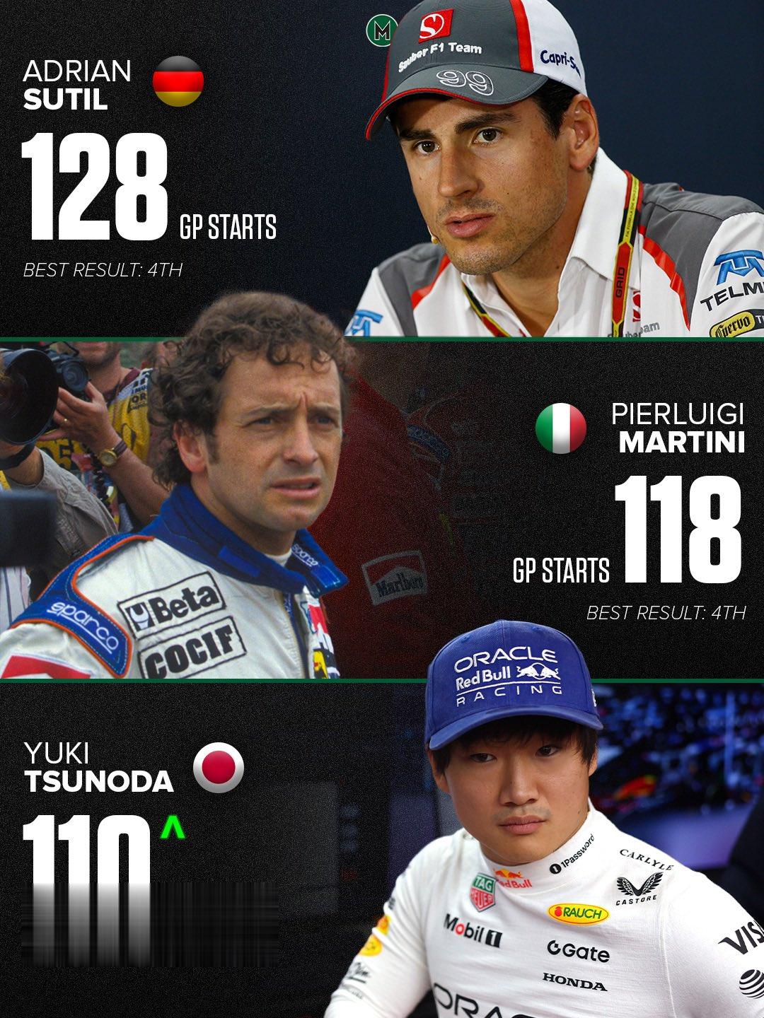 虎扑12月03日讯据Motorsport杂志消息,红牛车手角田裕毅如今是仍未登上过大奖赛领奖台的F1车手中参赛次数第三多的车手。