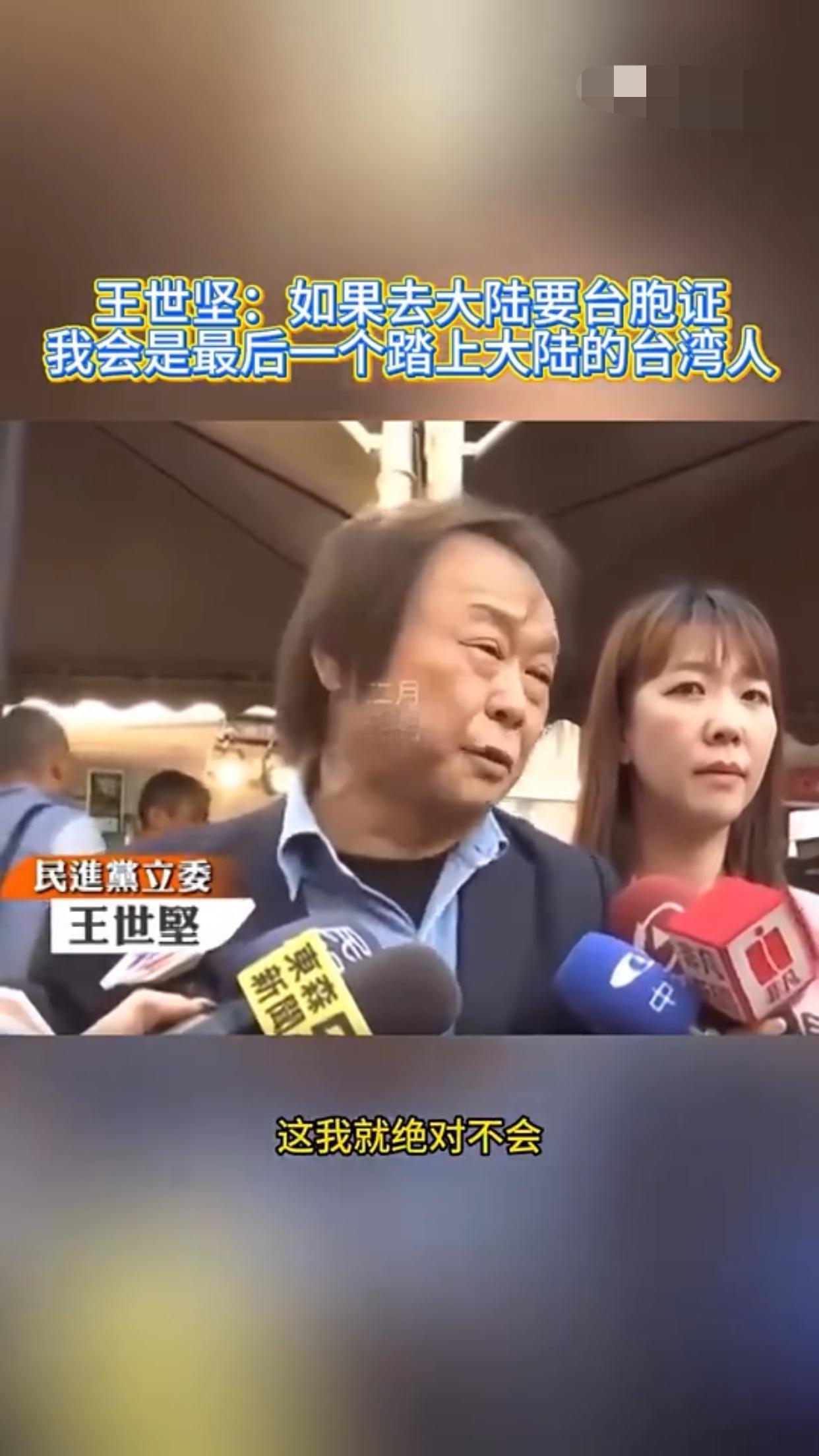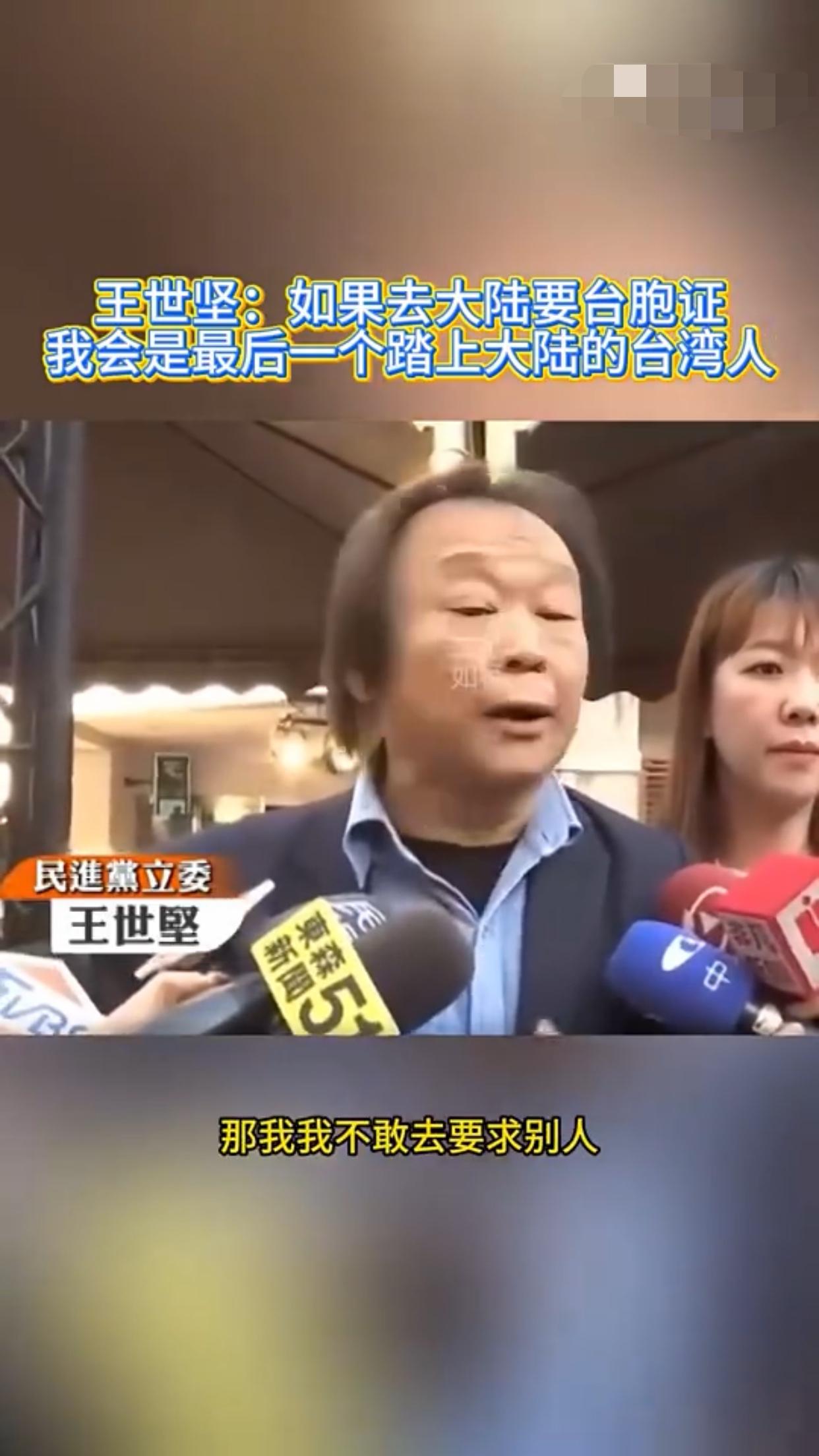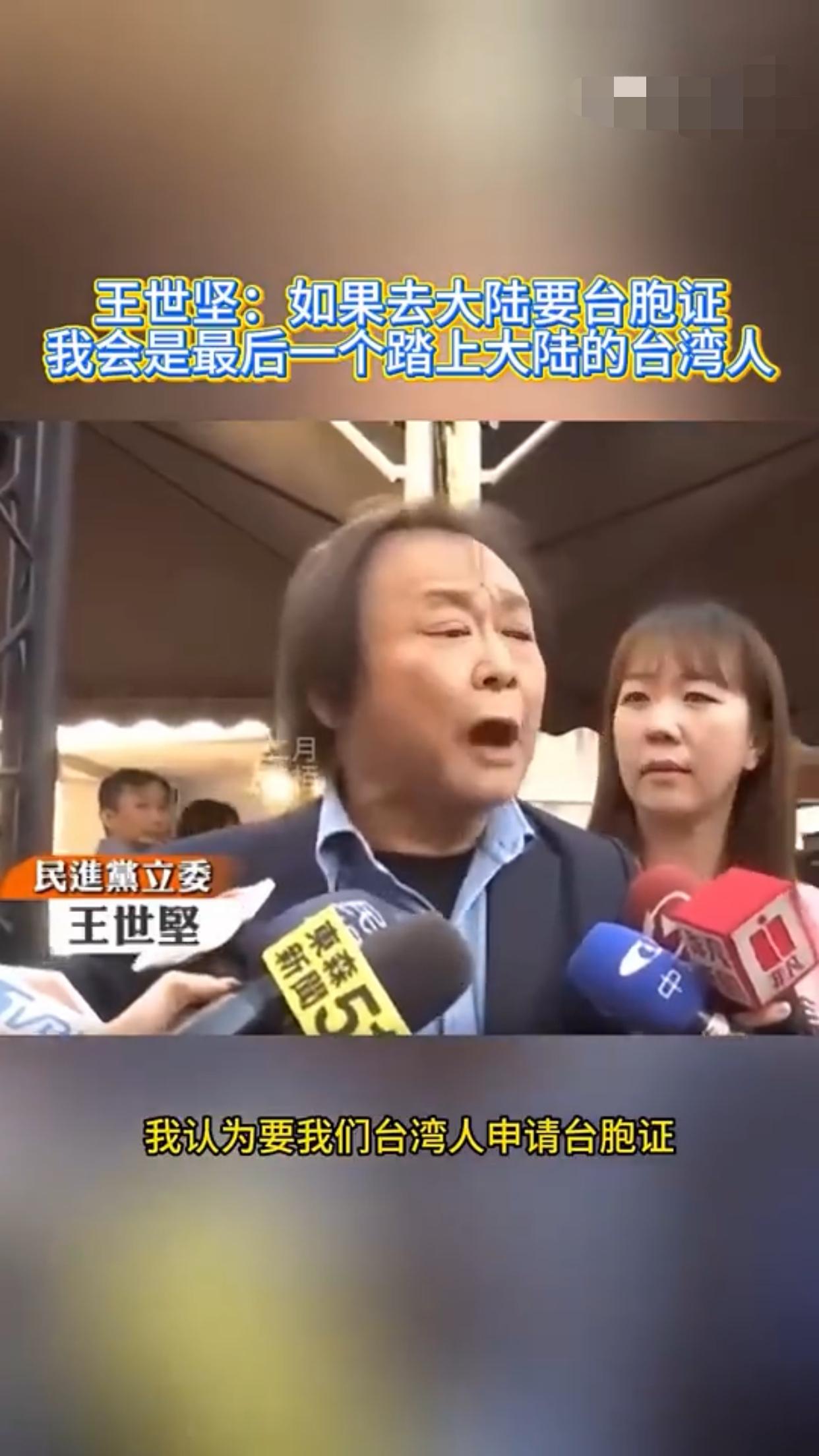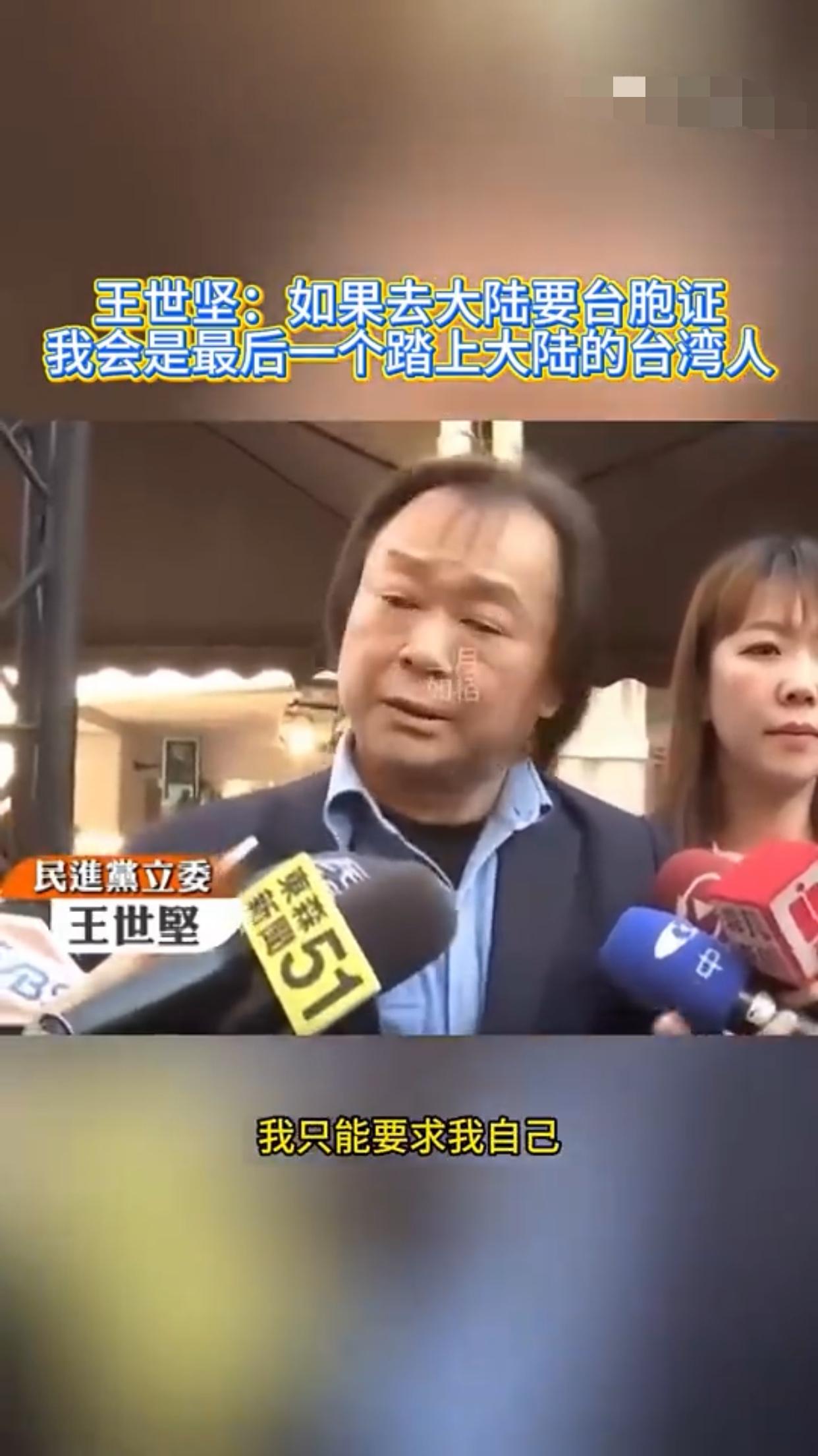 王世坚表示:他赞同去跟大陆做经济文化的交流,但是如果台湾人需要申请台胞证才能去大陆,那他王世坚会是最后一个踏上大陆的台湾人。