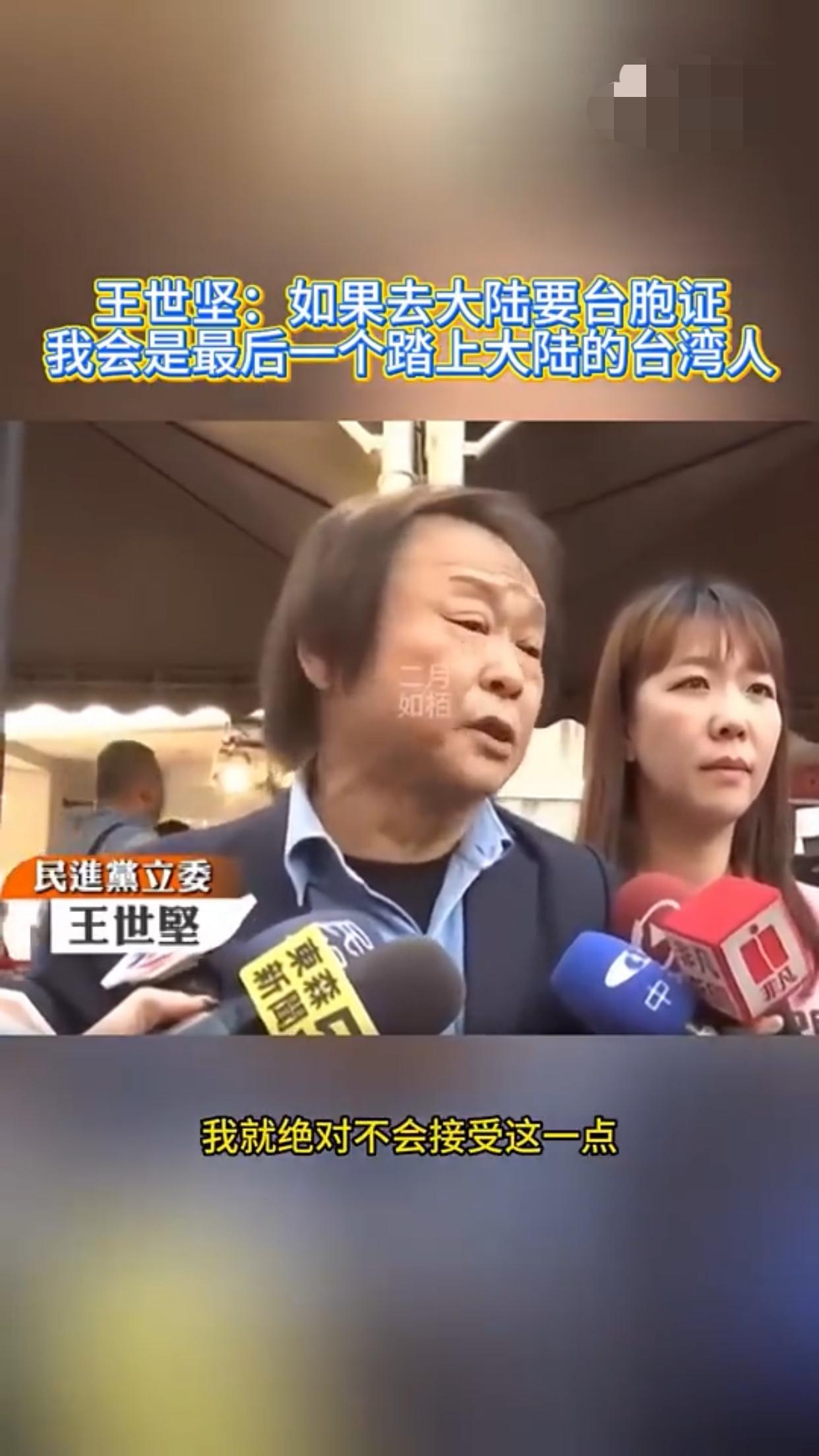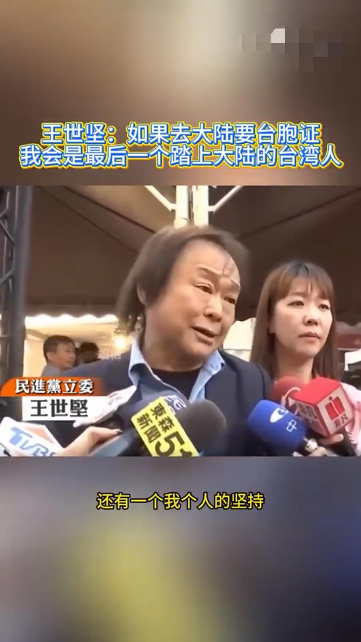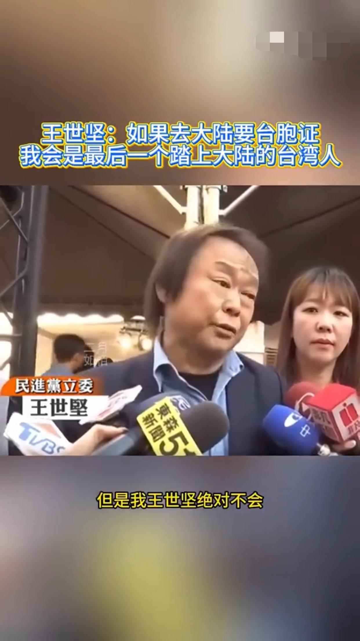王世坚表示:他赞同去跟大陆做经济文化的交流,但是如果台湾人需要申请台胞证才能去大陆,那他王世坚会是最后一个踏上大陆的台湾人。