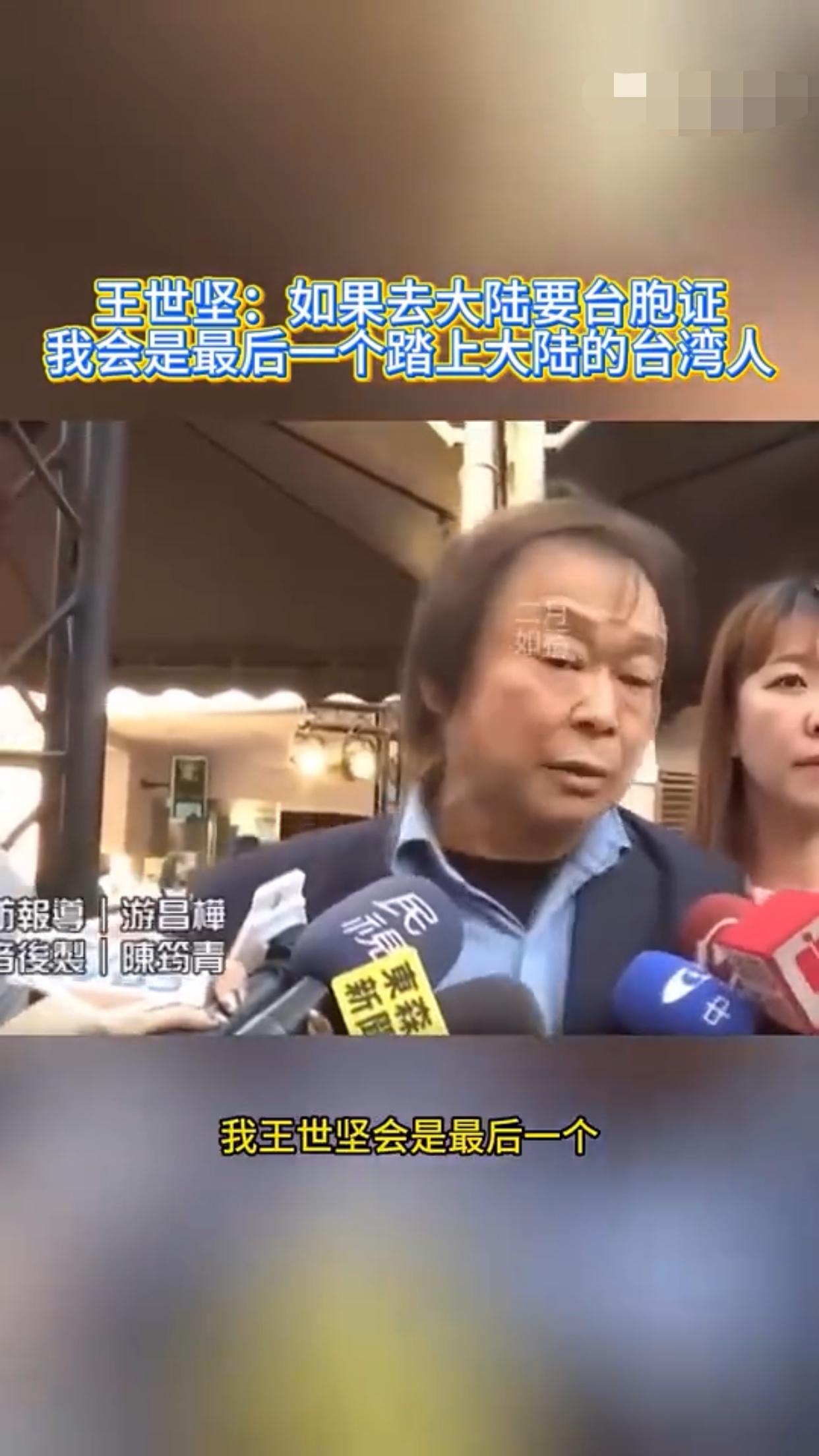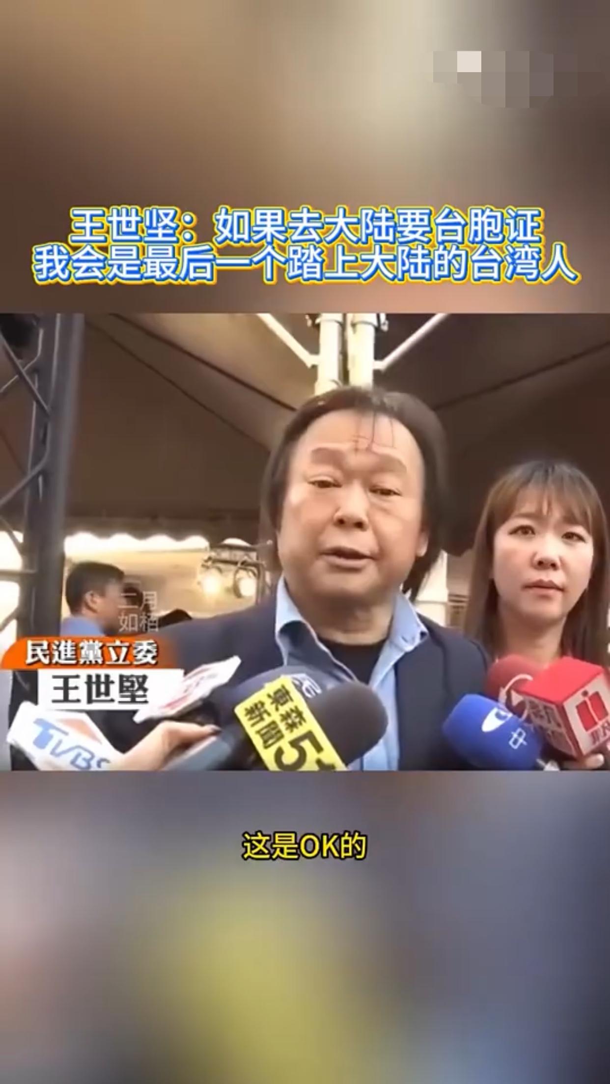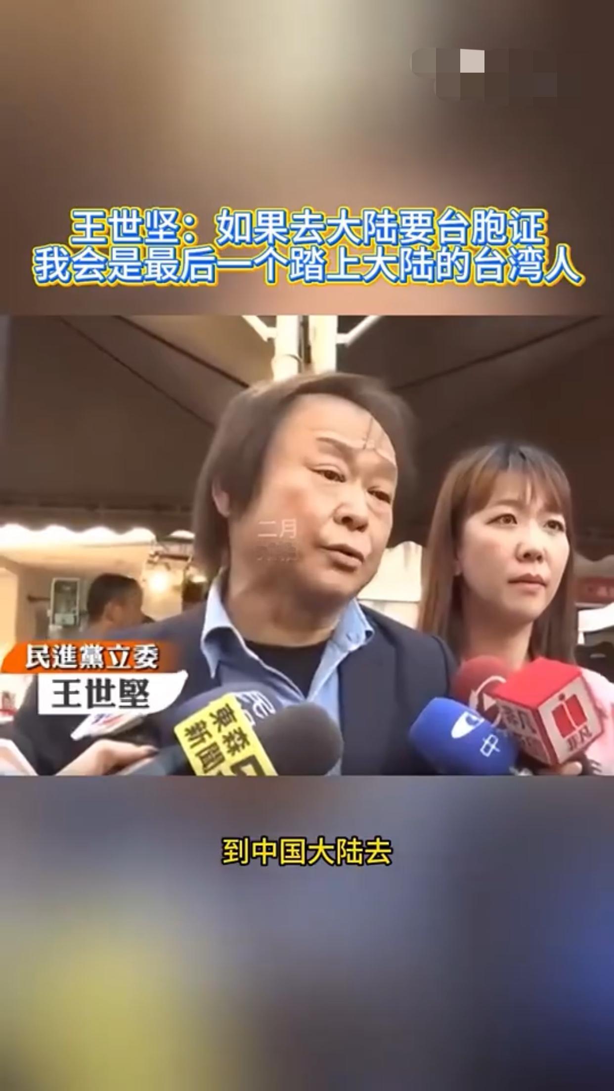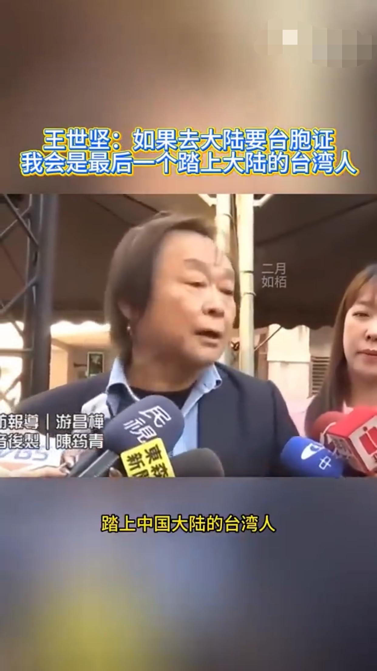 王世坚表示:他赞同去跟大陆做经济文化的交流,但是如果台湾人需要申请台胞证才能去大陆,那他王世坚会是最后一个踏上大陆的台湾人。