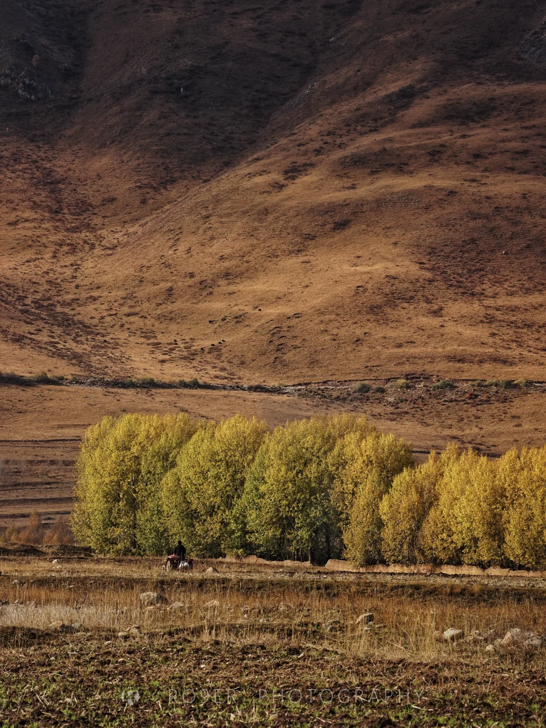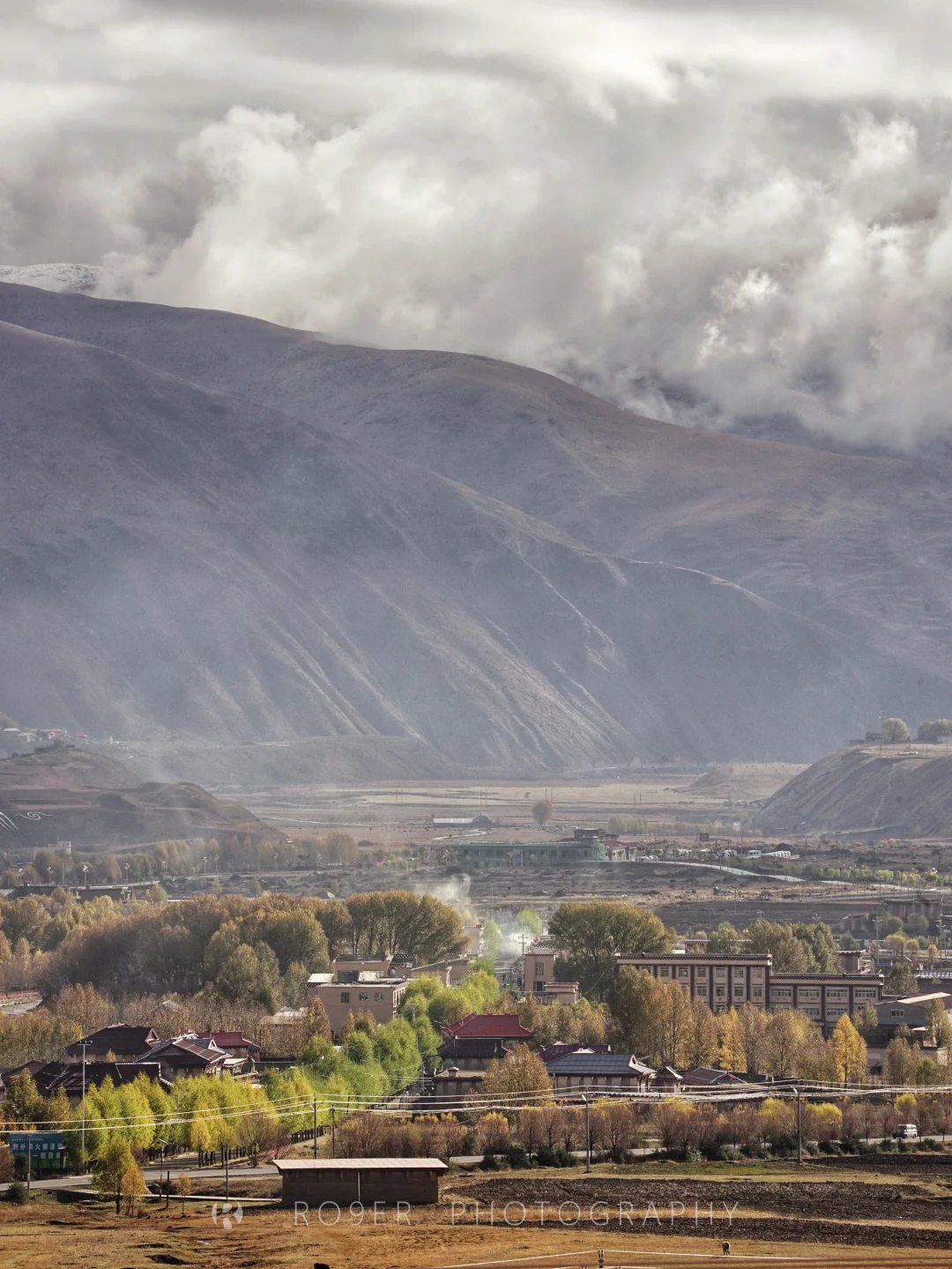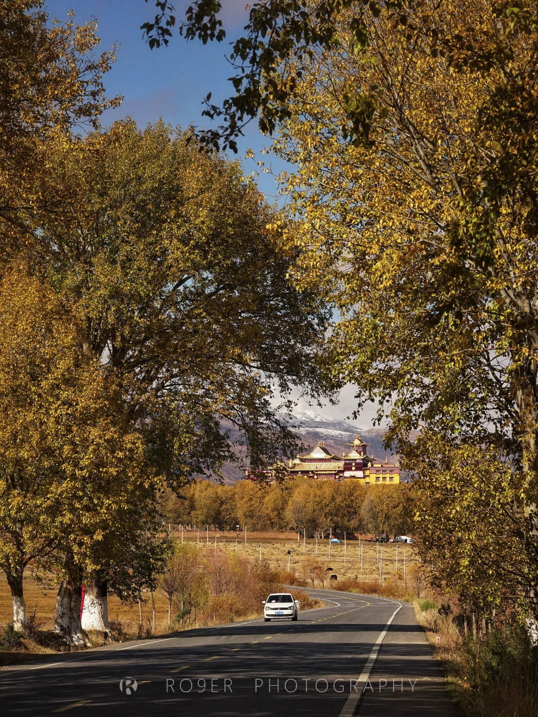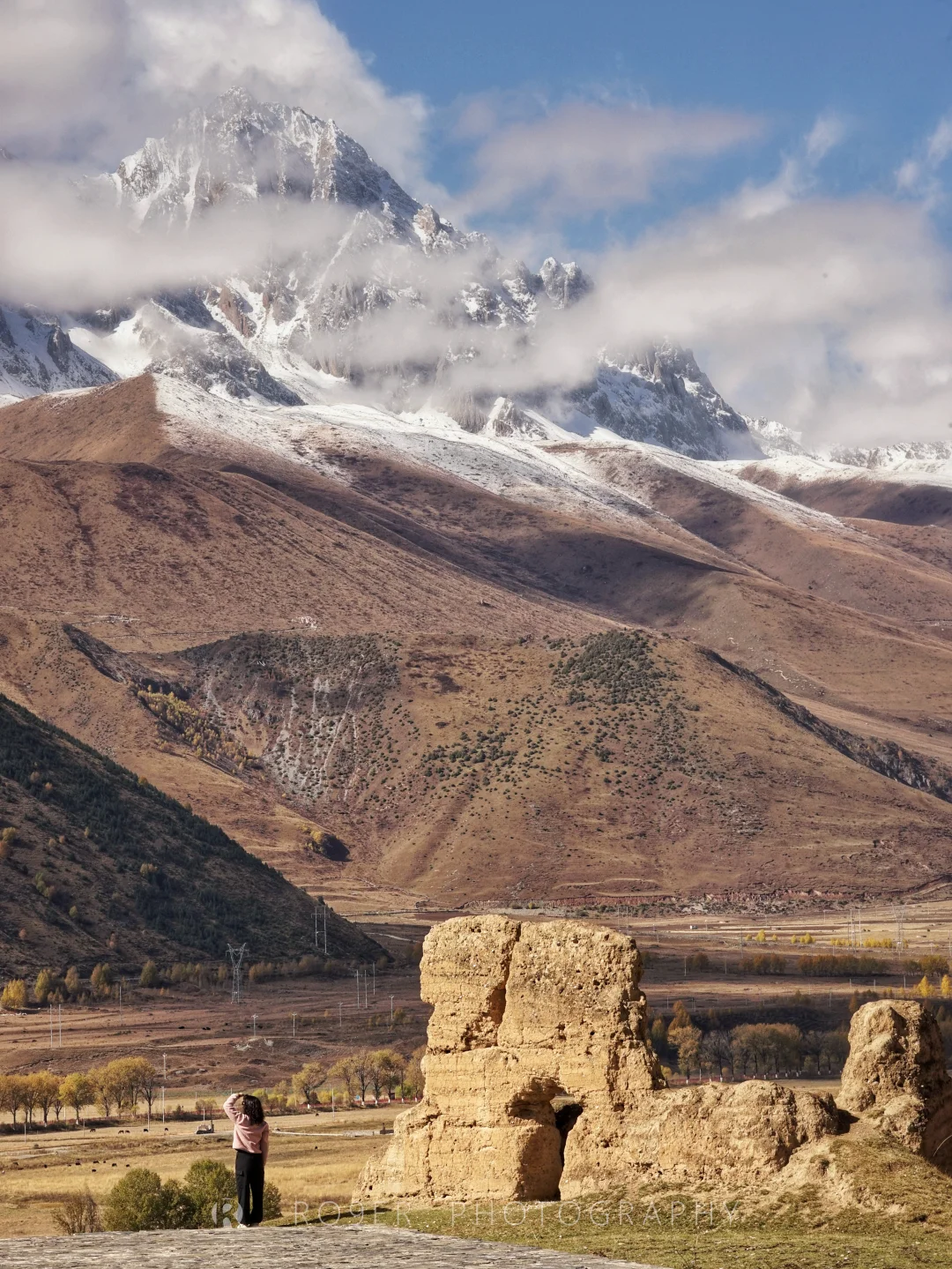 川西那么多景观大道,或是奇伟山峰搭配藏族寺院,或是无边花海点缀碧蓝海子,唯独雪山+田园牧场的组合少之又少,这也是我们特别偏爱甘孜县【百里青稞画廊】的原因。画廊之名,并未过誉,从格萨尔机场到圣康庄园这短短20来公里国道,几乎是一步一停一景的地步,蜿蜒的公路沿着温柔的雅砻江,在卡瓦洛日雪山脚下不断变换着方向,车窗外变幻的景观无时无刻不在刷新眼球,停泊的农机和叼着烟卷的劳作者随时贡献着"世界名画"的场景。在我们心中,虽然深秋时节是它的高光时刻,但不同季节都有各自的美,值得反复前来。