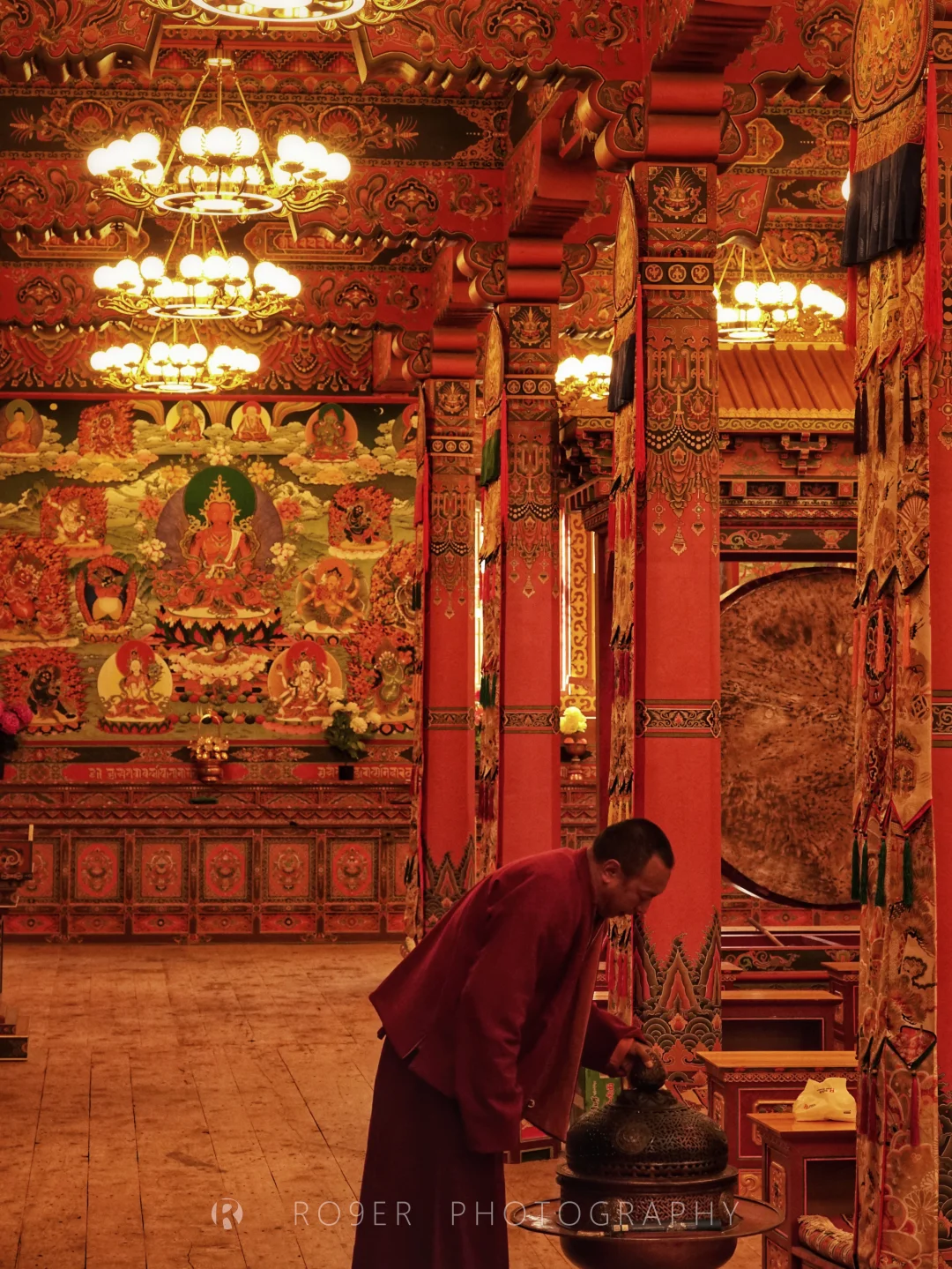 萨迦派传统的"红白黑",背靠雪山,面朝村落,小小的龙拉寺坐拥着百里青稞走廊最上镜的风光。请僧人开启大殿欣赏藏区一如既往精湛的造像和壁画,然后到不远处的观音池塘和僧人一起打坐冥想,或是回到大殿阶前遥望白塔,静听风铃回响,皆是不可多得的人间享受