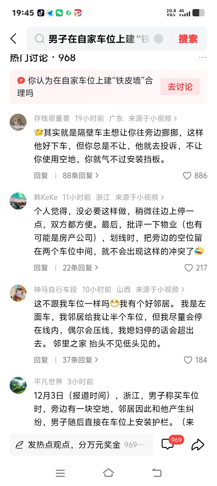 浙江金华一男子被邻居屡次指责“碍事”,怒砸万元在自家车位上筑起“铁皮城墙”,这场邻里车位大战撕开了多少人的体面遮羞布? 当私家车成为家庭标配,车位便成了都市生活的必争之地。浙江金华某小区的一处地下车库,近日赫然立起一道冰冷的铁皮墙。这不是工地施工,而是一位业主对邻里纠纷的终极回应。自家车位,合法购买,为何最终竖起高墙?这背后远不止停车纠纷,更是一场关于界限、尊严与人性试探的无声战争。 据大象新闻等多家媒体报道,事件起因并不复杂。男子购买的车位旁有一块空地,销售曾口头表示可“享用”。他偶尔会利用空地停第二辆车,却引来了隔壁车主的强烈不满。邻居多次投诉,称其车辆“碍事”,影响自己上下车。沟通无果、抱怨升级后,男子一怒之下,自费在车位边缘焊起了一道坚固的隔离板。 这道铁皮墙迅速在业主群和网络炸开。有人拍手称快,认为这是对得寸进尺者的最硬气回击。私人产权神圣不可侵犯,既然好言协商换来得寸进尺,不如用物理界限彻底划清领地。生活中多少矛盾,就源于一方不断试探底线,另一方不断退让妥协?这道墙,砌的是无奈,更是觉醒。 然而,也有不少声音认为此举过于极端,缺乏邻里温情。中国社会向来崇尚“远亲不如近邻”,低头不见抬头见,何必弄得如此僵持?让出几十公分空间,与人方便,自己下车也宽松。他们认为,男子的做法虽然解气,却可能激化矛盾,甚至面临违规搭建的风险。物业的协调缺失,在此事中同样难辞其咎。 深入剖析,这场冲突的根源在于“模糊空间”的权属与人性中的“领地意识”。销售的口头承诺成了导火索,那块暧昧的空地成了双方角力的战场。邻居的每一次投诉,或许不仅是抱怨停车不便,更可能夹杂着对他人“多占”资源的眼红与心理失衡。而男子的铁皮墙,则是用最直接的方式宣告主权,终结所有试探。 从情感层面,我们或许都曾是被“得寸进尺”困扰的普通人。办公室里总让你帮忙的同事,生活中不断索取的朋友,小区里总占你车位的邻居……忍让换不来尊重,有时只会招来更进一步的挤压。金华这位男子的做法,无疑触动了大众心中那根关于“反抗”与“树立边界”的敏感神经。他的决绝,替无数不敢撕破脸皮的“老好人”完成了一次情绪宣泄。 但宣泄之后,问题真的解决了吗?铁皮墙能隔绝车辆,却砌不起人心的桥梁。法律上,此举是否涉及违规改建?未来若真对簿公堂,口头承诺能否作为依据?这些问号,依然高悬。它留给我们的思考是:当现代社区的物理距离如此之近,我们究竟该如何建立清晰、健康的人际边界,既维护自身权益,又不失基本的人情温度? 事件最终会如何收场尚不可知。或许物业会介入拆除,或许双方会走向调解,也或许这道墙将长久矗立,成为小区里一个尴尬的“景观”。但可以肯定的是,它已不再是一个简单的社会新闻。它像一面镜子,照见了快速发展中,城市居民在拥挤空间里如何自处与相处的深层焦虑。 当我们为那道铁皮墙争论不休时,我们真正讨论的,是自己内心关于界限的尺度。你的车位边界在哪里?你的忍耐底线又在哪里?这道题,没有标准答案,却关乎每个人是否能活得舒心、坦然。 (来源:综合自大象新闻、沸点视频等媒体报道及网络社交平台热议) 邻里关系 车位纠纷