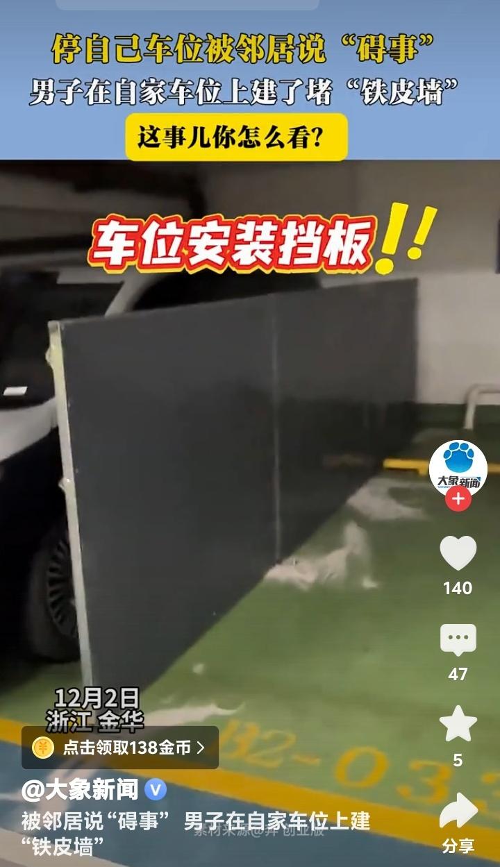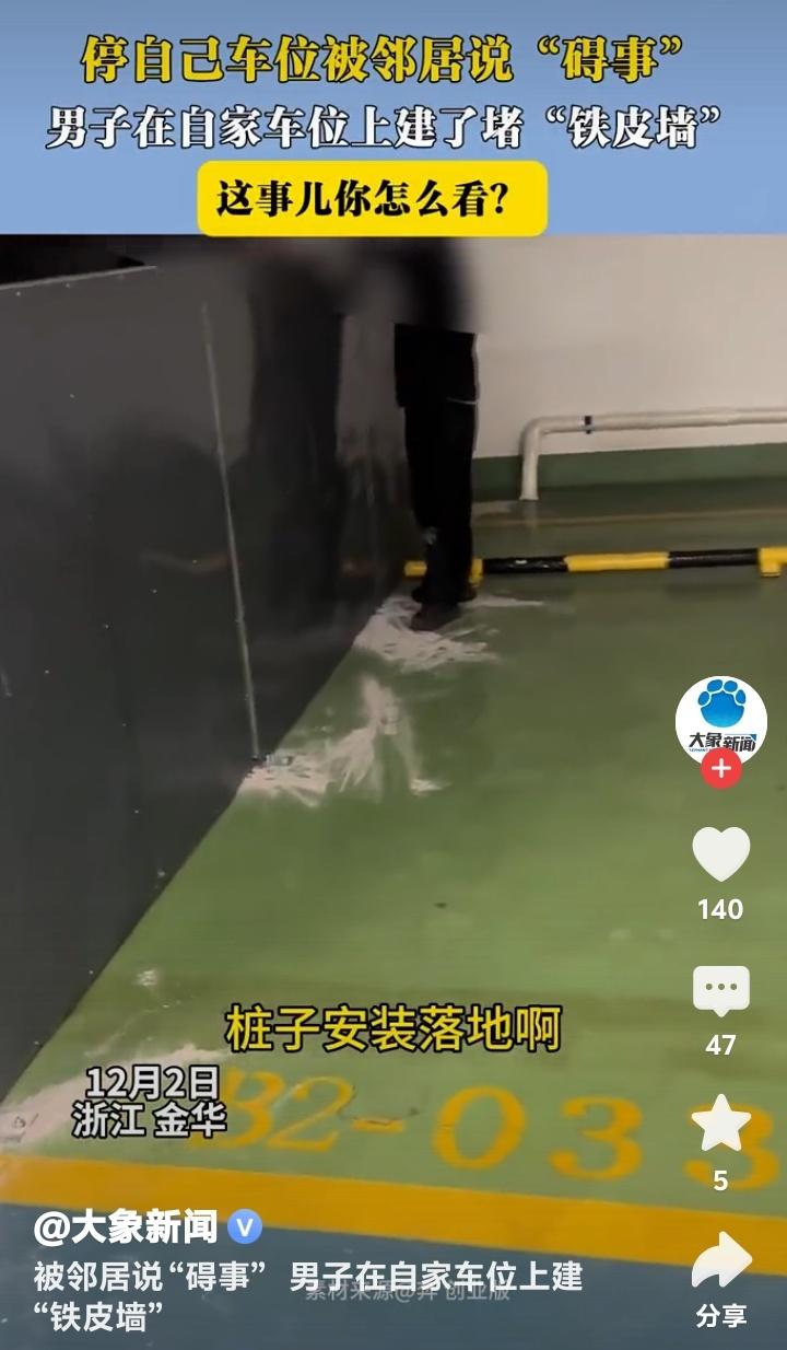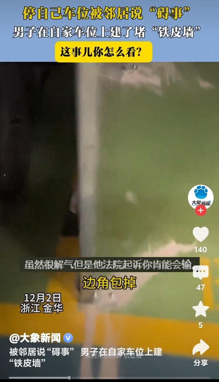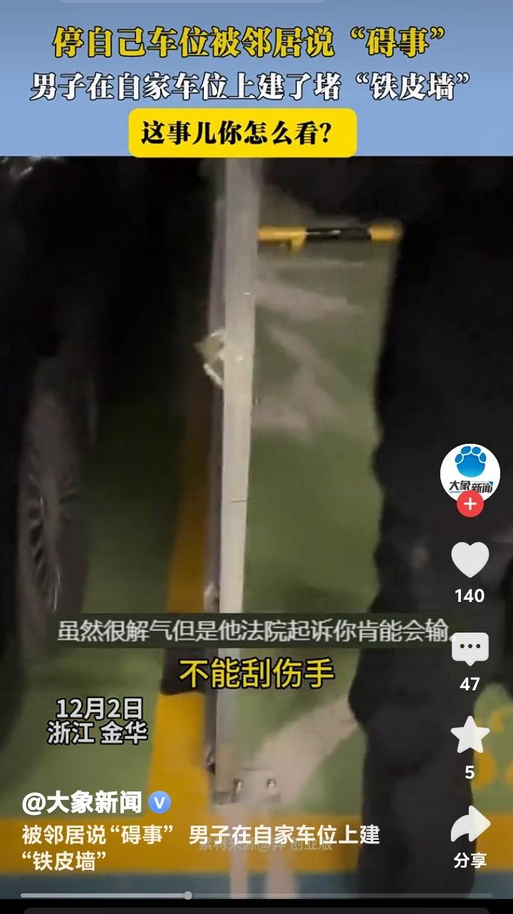 浙江金华一男子被邻居屡次指责“碍事”,怒砸万元在自家车位上筑起“铁皮城墙”,这场