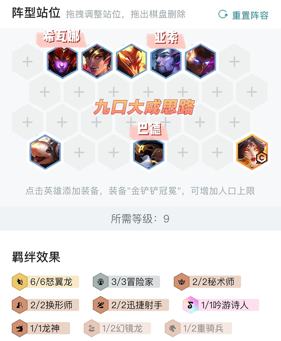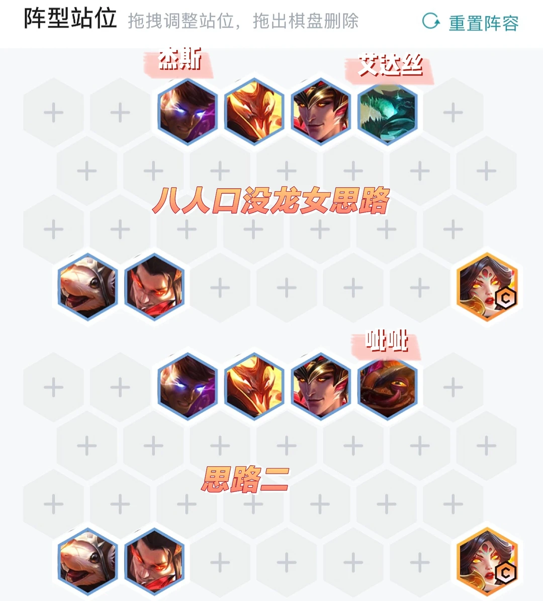 后期没有龙女之前可以用二星金龙或者呲呲代替,尽量八级找一张或者有钱有血量直接上9。