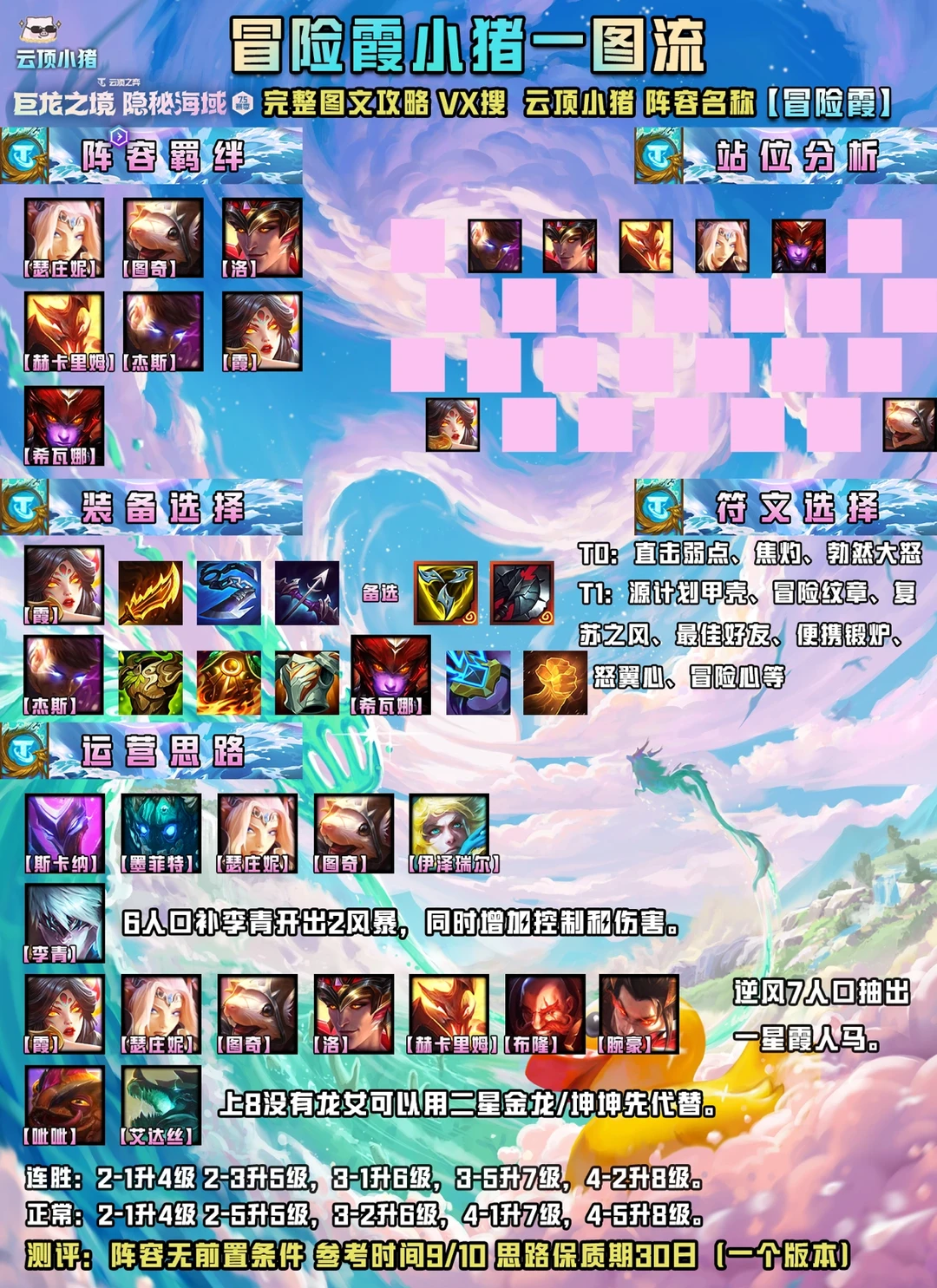 [哇R]今天推荐的冒险霞是S7基础上装备和人员搭配有一些改动,没有玩过美测的宝可以根据我下面的运营思路一步一步来。