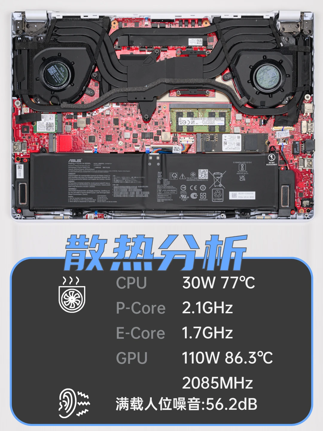 不过在性能表现上,两颗核心140W的释放依然是比较强的,并且足够RTX 4060版本使用。
