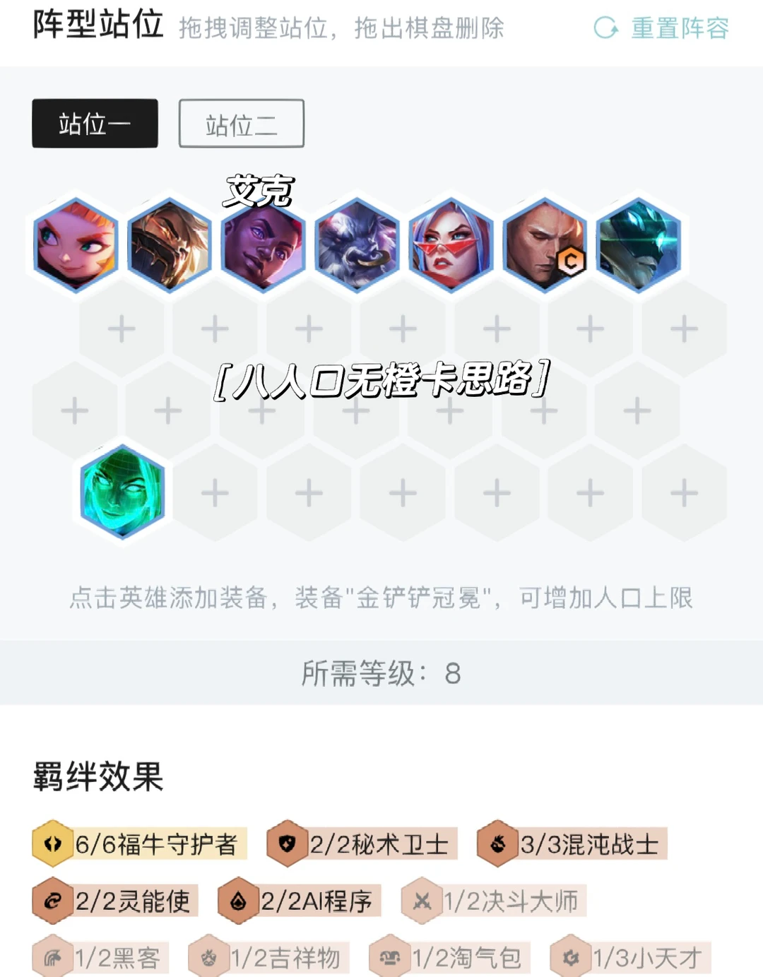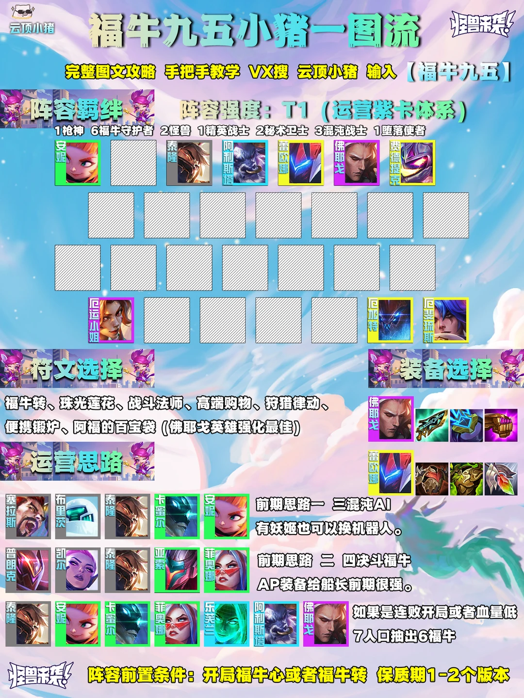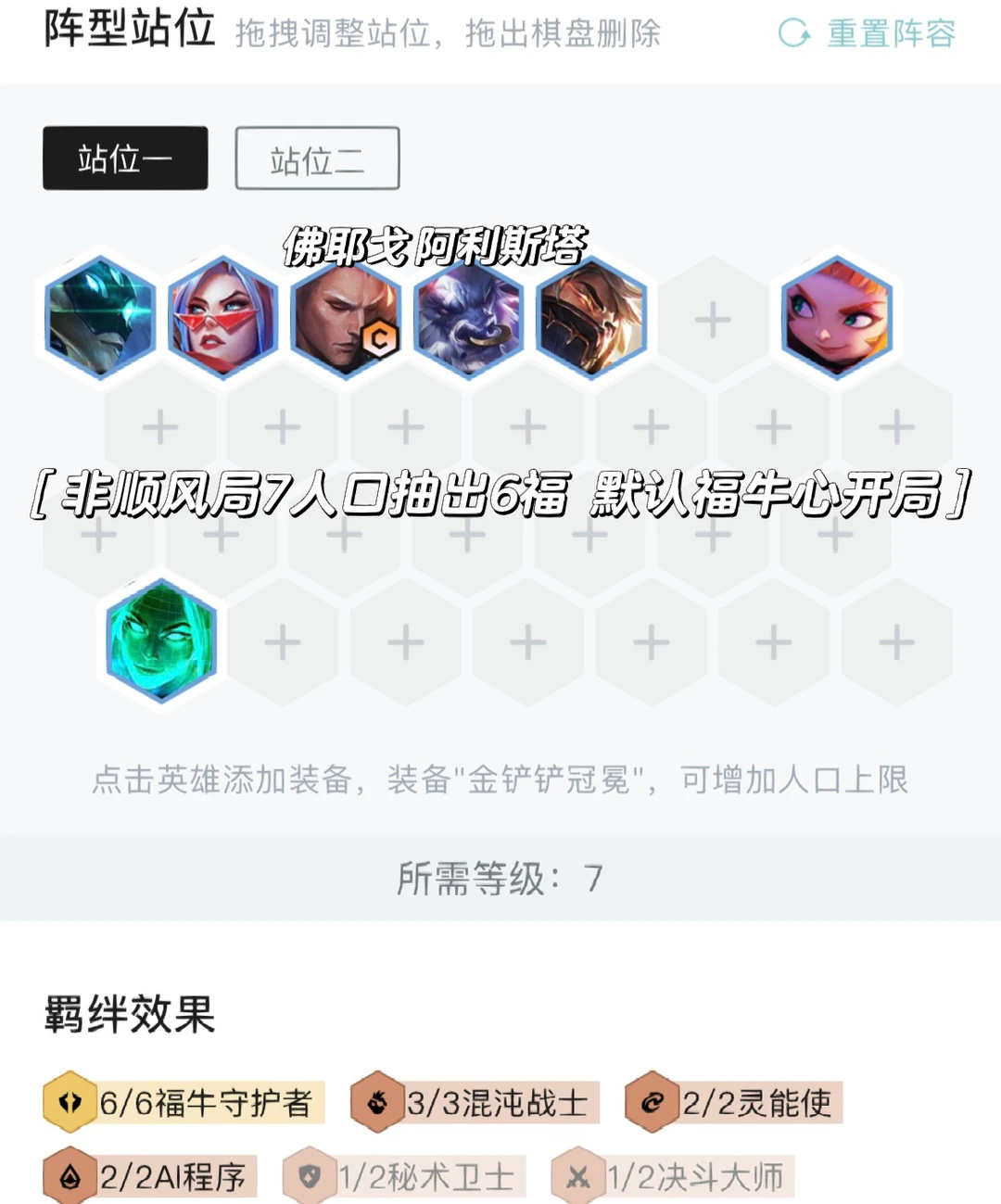 8人口凑出6福加二星佛爷和基础牌,有橙卡挂橙卡,女枪没有挂莎弥拉也行,福牛莎弥拉比福牛女枪还是弱点。