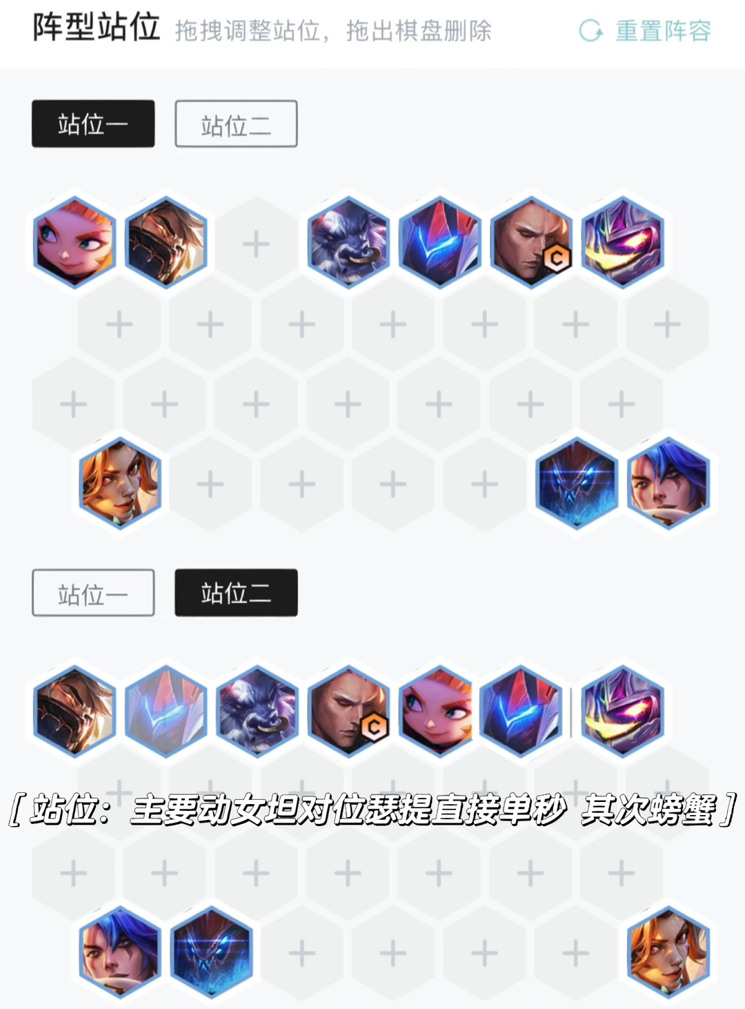 主要是动女坦的位置,对位瑟提这种大肉,对到胜率直接翻倍。其次就是螃蟹了,螃蟹这卡的控制和拉扯位置其实非常厉害。