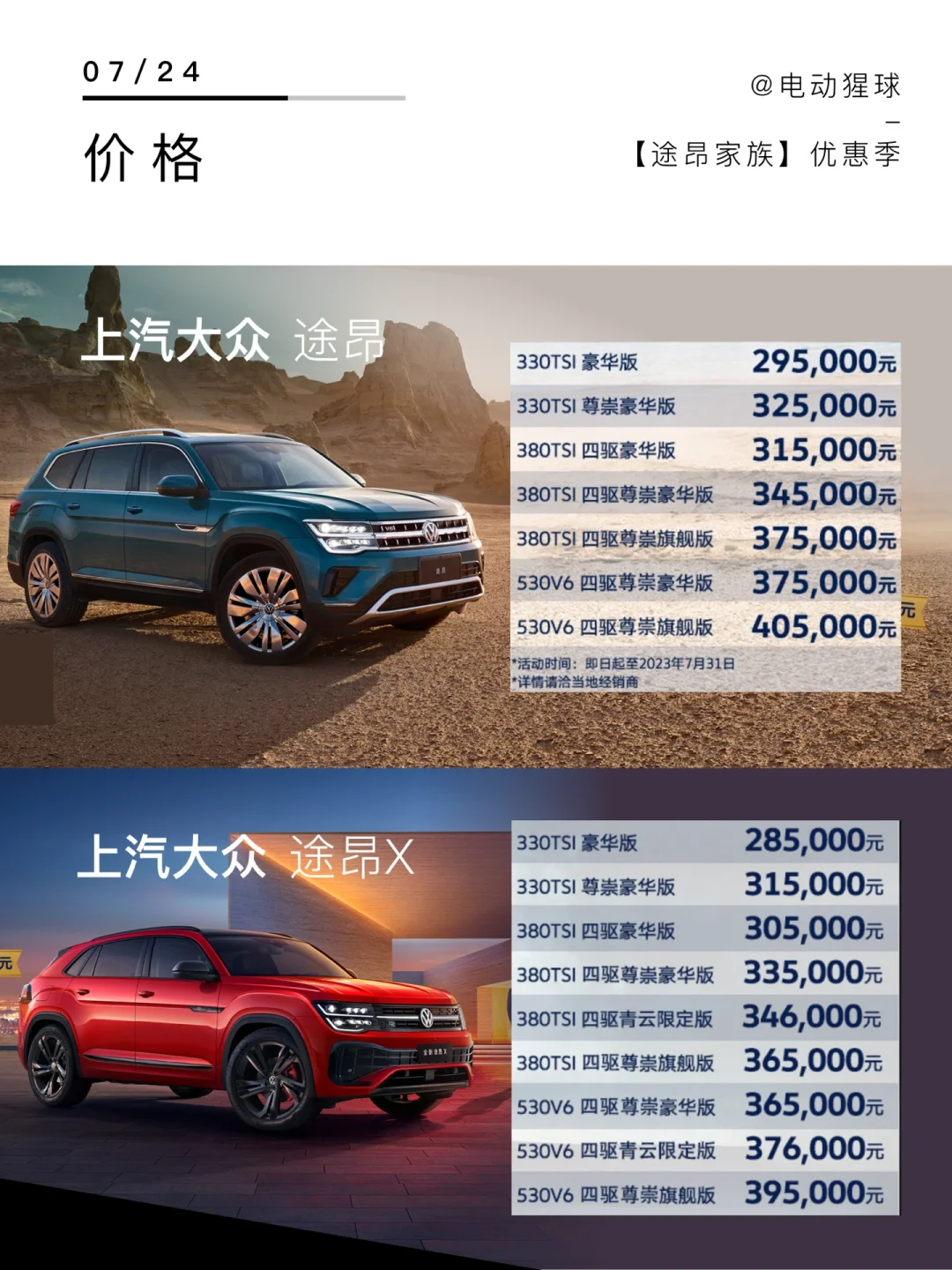 🎉上汽大众“放价”了!7月至高综合优惠6W,好价不等人,这篇笔记新鲜出炉,告诉你豪华旗舰suv 家族途昂、途昂X,名字相差一个X,究竟该怎么选?