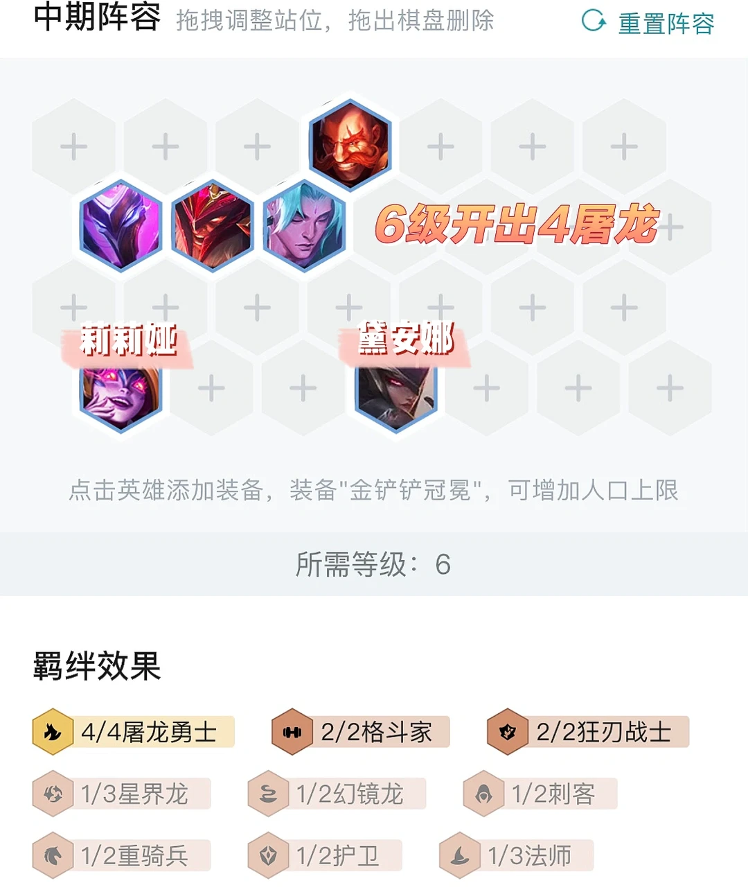 视情况选择6抽或者7抽4屠龙,7人口全员二星后根据血量和经济情况选择上8或者7追三星都可以。