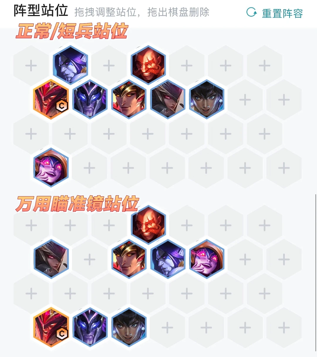 上图正常/短兵之利站位,下图万用瞄准镜站位。没有鸟盾也可以不站一起,有最佳好友/浪人也分开点。
