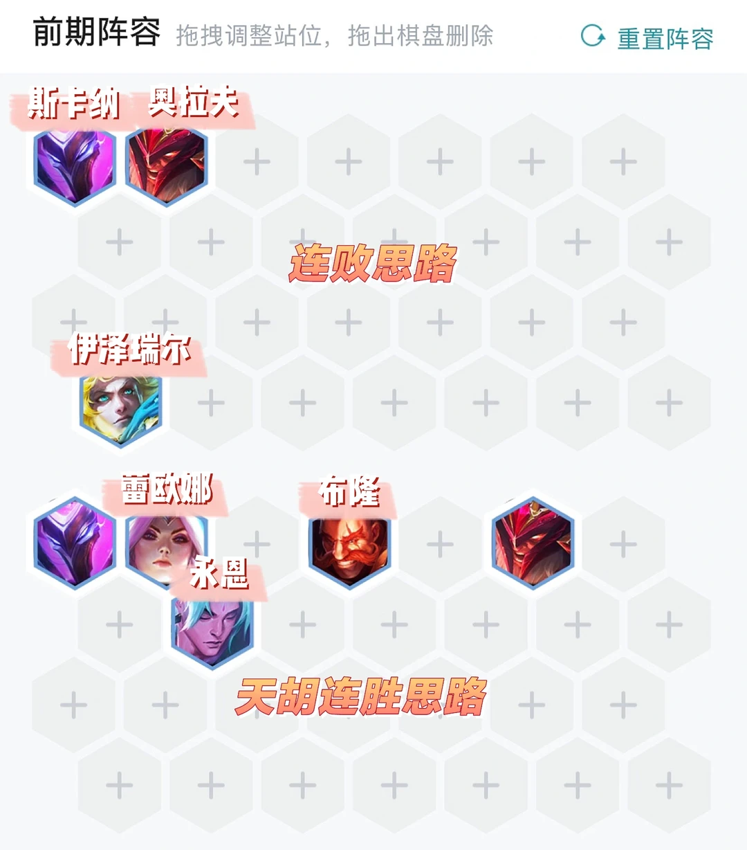 前期思路分为两种,一种是不胡,只有拉夫装备也不好,就直接两斗士连败,带个后排输出换点怪精致连败。