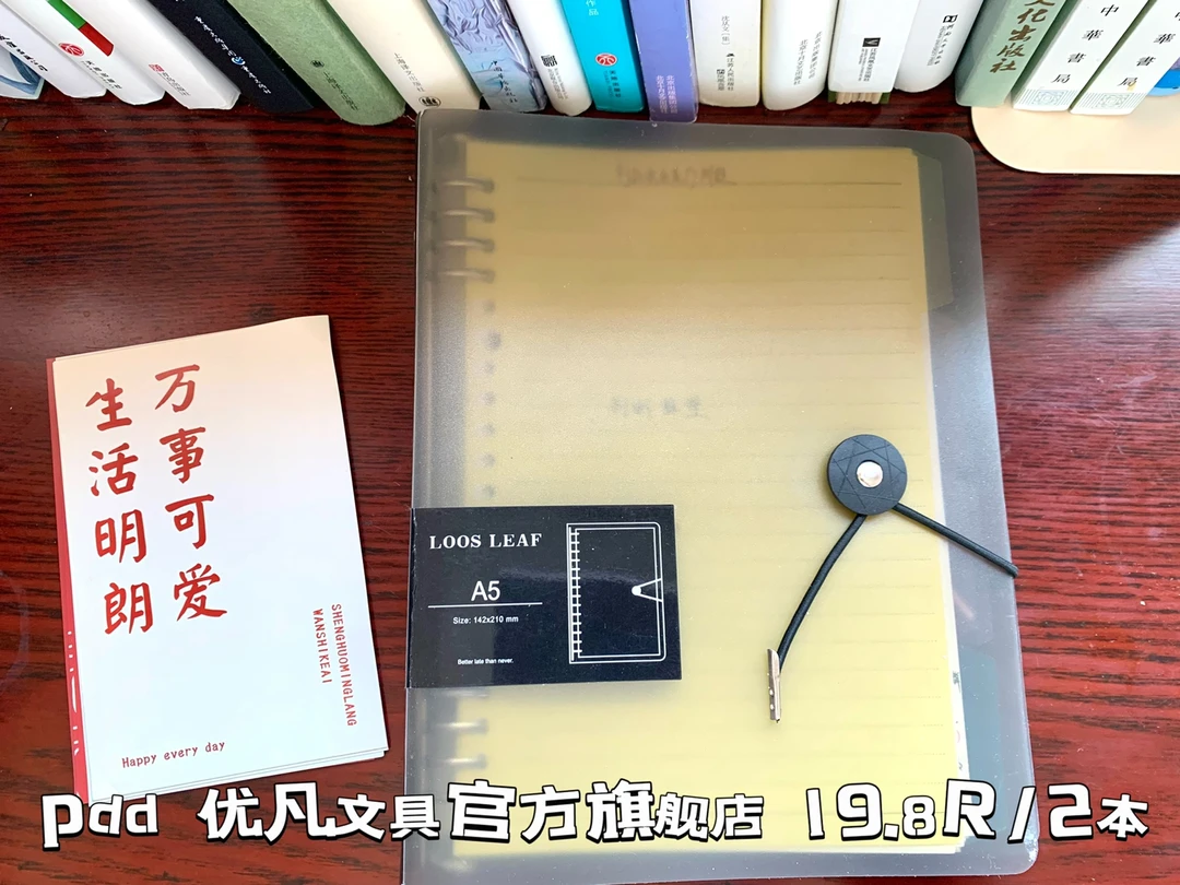 好的书让我喜欢做笔记,这本活页笔记本,外观简约时尚,更重要是内页可自己添加,解决了这个版块内页用完了怎么添加内容的烦恼。随着笔记内容的增加,越来越满意这本笔记本啦。(pdd 优凡文具官方旗舰店 19.8R/2本)
