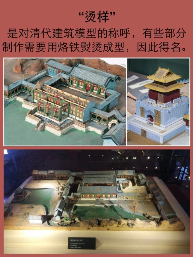 是对清代建筑模型的称呼。它的制作过程是,先用元书纸、高丽纸层层粘合,成为较硬的板料,再剪裁成型、涂饰颜色,最后粘合组装成完整模型。