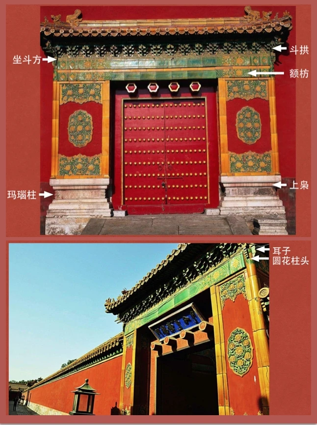 圆花柱头用于琉璃影壁左右两端,耳子是贴于柱正面的装饰构件。