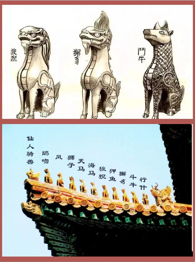 故宫殿宇屋脊排列着许多奇珍异兽,他们的数目代表着宫殿的高低等级。