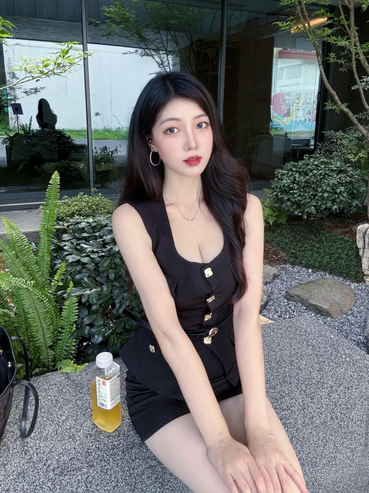 《临江仙·闲庭午坐》 作者/朱珠 翠蔓摇窗遮暑色,苔阶石畔风轻。露肩裁得黑纱明,金釦斜排领,细带束腰晴。 鬓发半垂勾耳坠,指尖轻掠蝉鸣。唇间红印趁春酲,茶瓶倾浅碧,云影落闲庭。 漫看玻璃描树色,衣香悄裹凉馨。懒抬眸处日初停,鬓边丝欲绾,风里意偏宁。