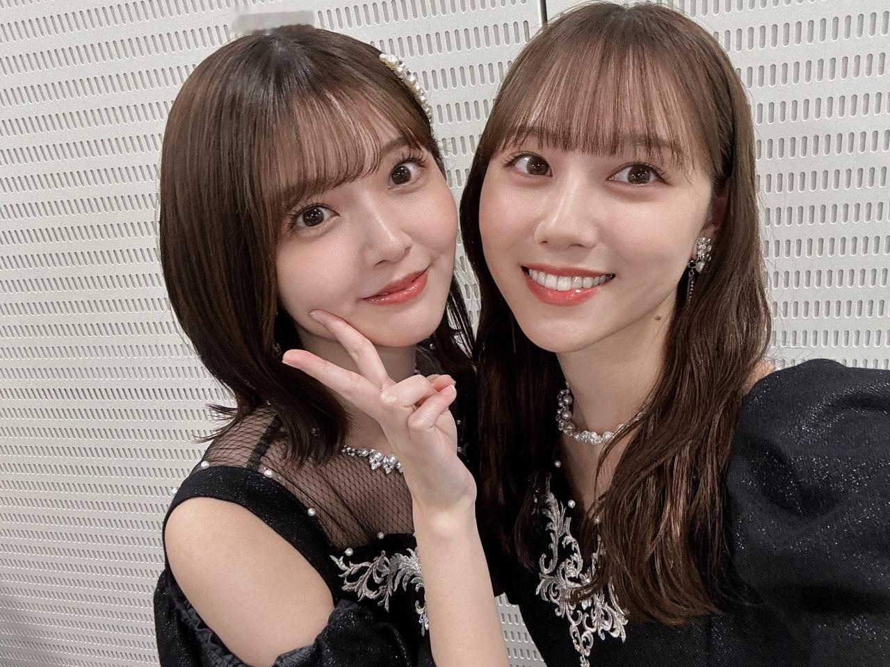 平岡海月「先日の「ベストアーティスト2025」のオフショット!この日のはるはるおとなっぽくてどきっとする😳はるはるが横向いて〜!いいねいいね!!って撮ってくれた。べた褒めはるはるに少し恥ずかしくなってる。はるはるの指示にてファビュラスなポーズをしました✨この後もう少し派手にやりましたがそれはしまっておきます。」