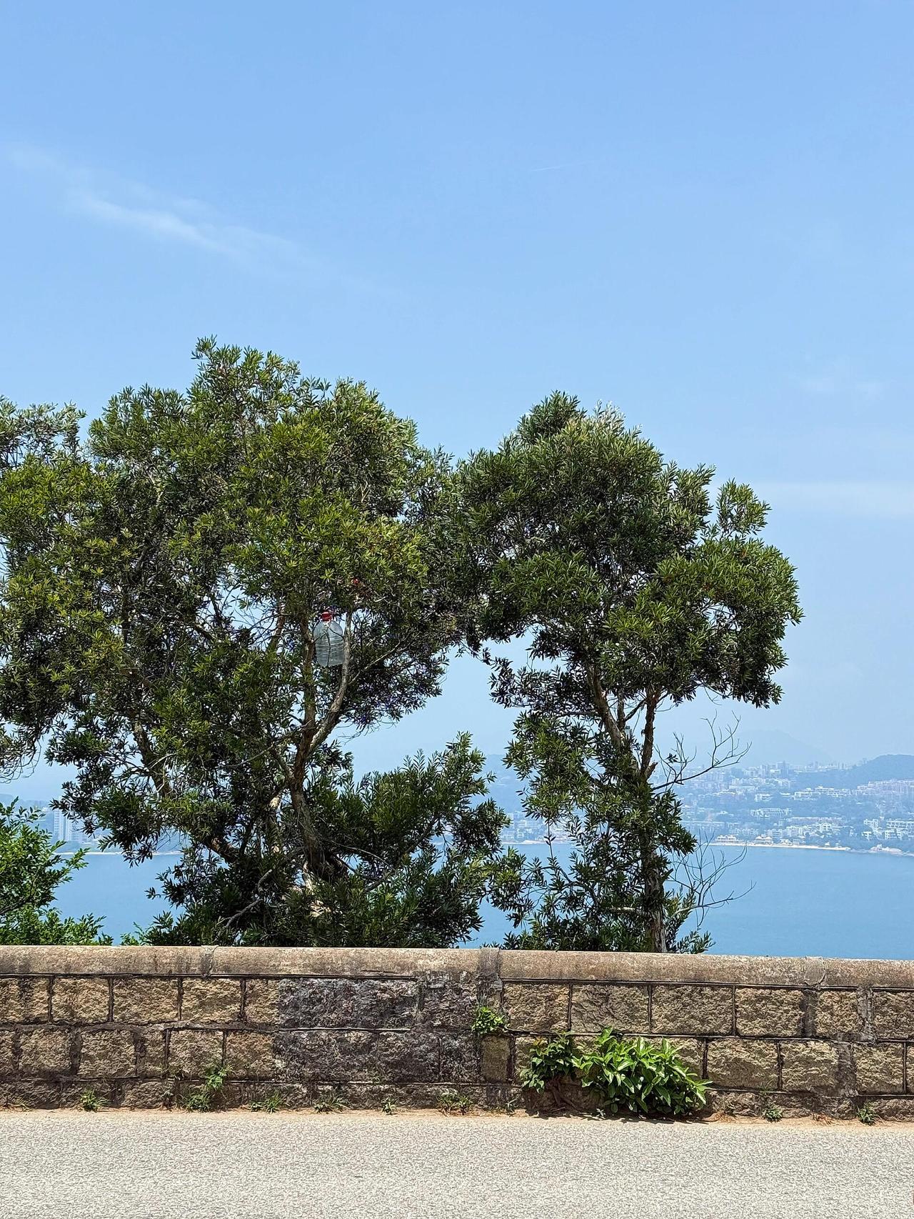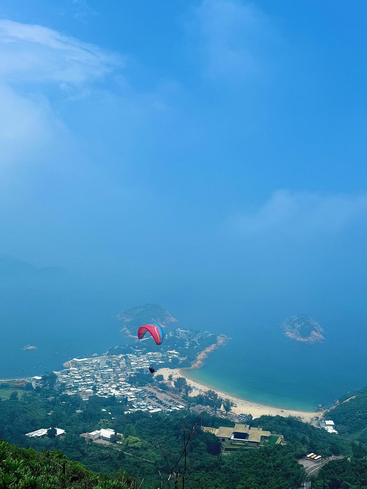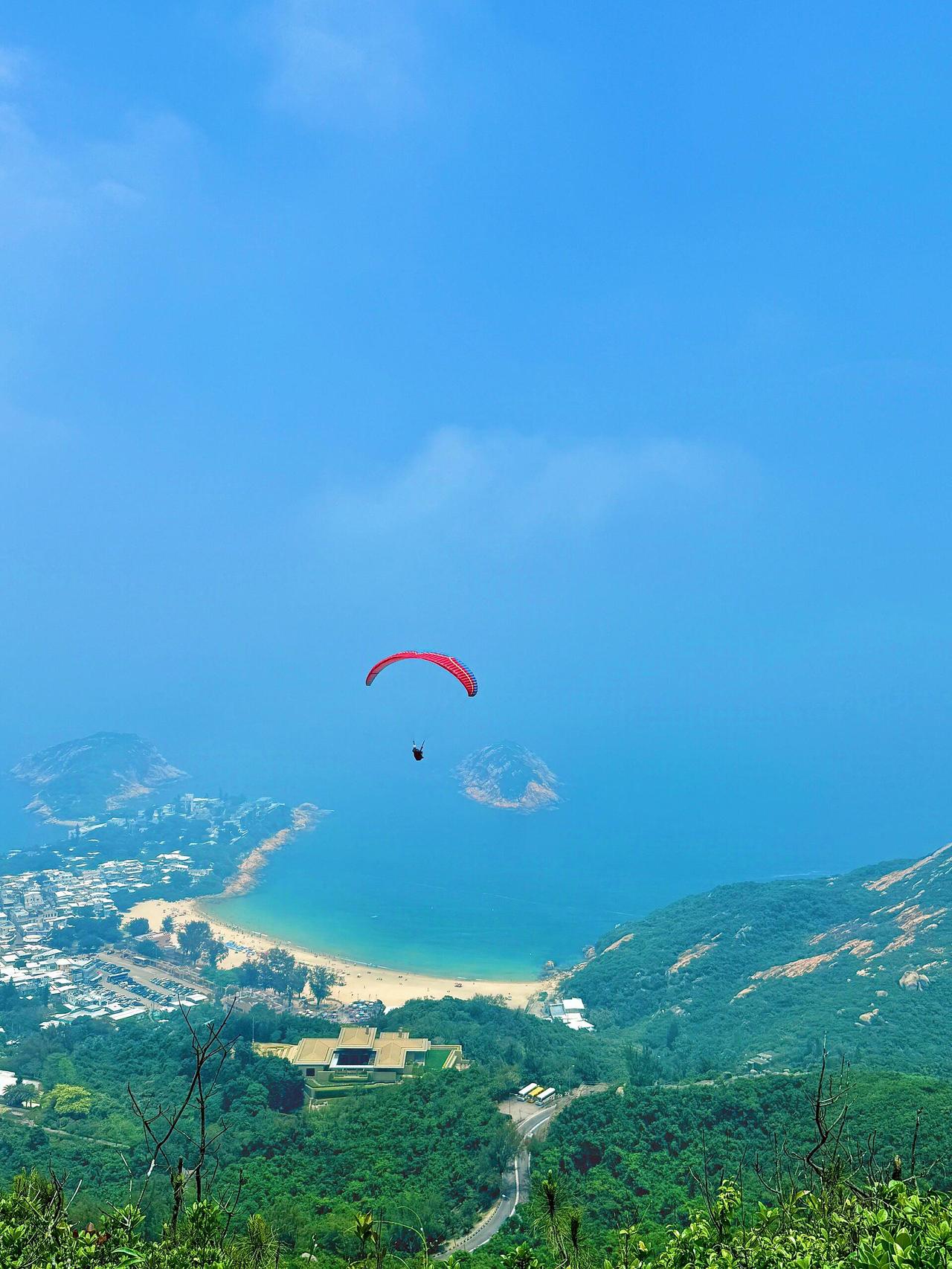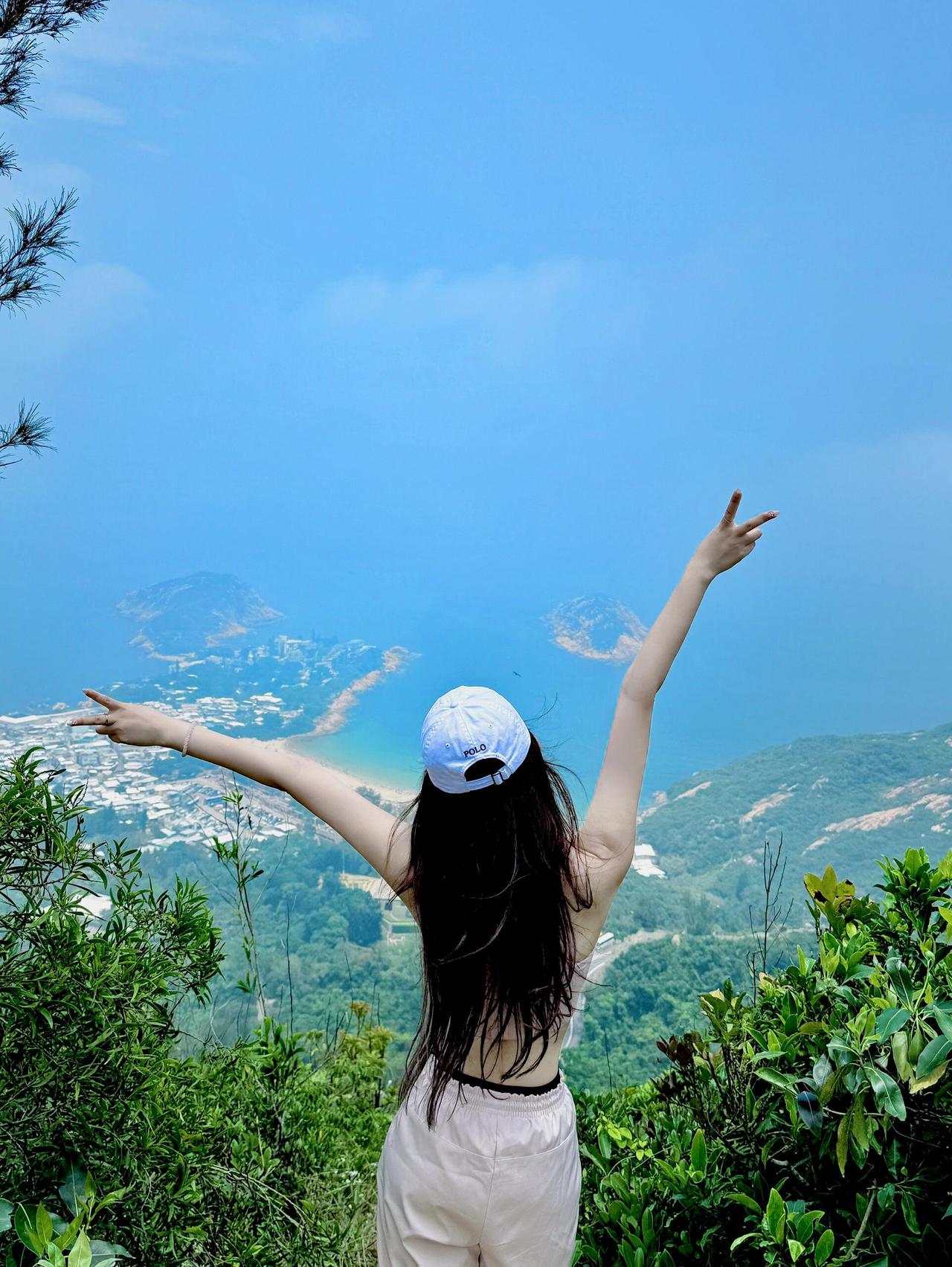 《山顶有风裹着海》 粉色背心沾了半肩山风的潮气, 白褂系在腰头,晃成软的帆—— 帽檐的阴影斜切过笑纹, 矿泉水瓶凝的细汗,洇湿指腹的凉。 海在远处铺成淡蓝的雾, 两个小岛浸在玻璃似的浪里, 白房子挤着沙滩,像撒落的奶糖块。 滑翔伞剪开云的缺口, 红蓝色翅膀擦过海岸线, 风裹着它的呼啸,撞在我们摊开的臂弯。 林间小路还留着光斑的碎影, 树叶咬着阳光沙沙响, 我们踩过的石径,沾着刚才蹭落的草屑—— 风是活的,它裹着海的咸, 裹着掌心摊开的温度, 把这刻的蓝,缝成随身的口袋。