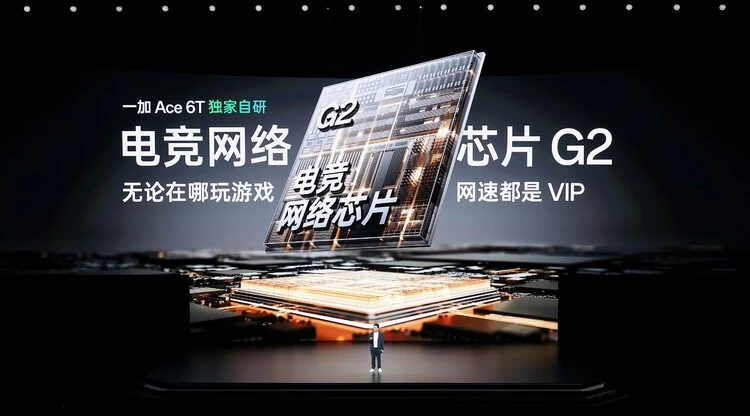 此外,为实现更极致的游戏体验,一加Ace6T还搭载「电竞网络芯G2」和「灵犀触控芯」,「电竞网络芯G2」具备独家自研信号主动增强技术,实现Wi-Fi网络信号强度提升50%,蜂窝网络游戏延时降低20%,配合独家游戏云计算专网技术,保障游戏全程流程在线。一加Ace6T还搭载全新「灵犀触控芯」,支持3200Hz瞬时触控采样率,为行业最高水准。一加Ace6T在安卓阵营,首批支持「触显同步」架构,操控准确性及稳定性大幅提升,带来极致跟手的操作体验。一加Ace6T还支持主机手柄同款陀螺仪,在FPS游戏中真正做到甩狙不飘,助力玩家追求极致竞技表现。为了保障极致的性能释放,一加Ace6T搭载全新的「冰河散热系统」,总散热面积高达43940mm²,配合全新升级的「冰河VC」、「冰河石墨」、冰河导热凝胶等创新技术,保障性能持久冷静输出。