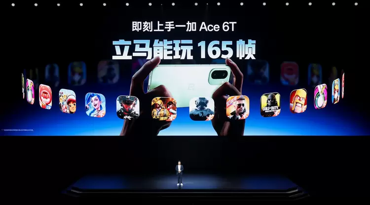 凭借着出色的性能表现,一加Ace6T行业首发《和平精英》原生165Hz高刷新帧率模式,进一步推动165超高帧游戏的全面普及。一加Ace6T还全面适配《三角洲行动》、《使命召唤手游》、《穿越火线-枪战王者》、《暗区突围》原生165帧模式,并支持MOBA、FPS、格斗、赛车、音游5大类电竞手游的原生165超高帧模式,打造原生165帧超高帧游戏豪华阵容。得益于行业独家GPU渲染超帧技术,一加Ace6T还率先在原本不支持原生165超高帧模式的《王者荣耀》《无畏契约手游》等国民手游中,实现165超高帧游戏体验,带来媲美PC视效的游戏帧画品质,实际游戏体验大幅领先。