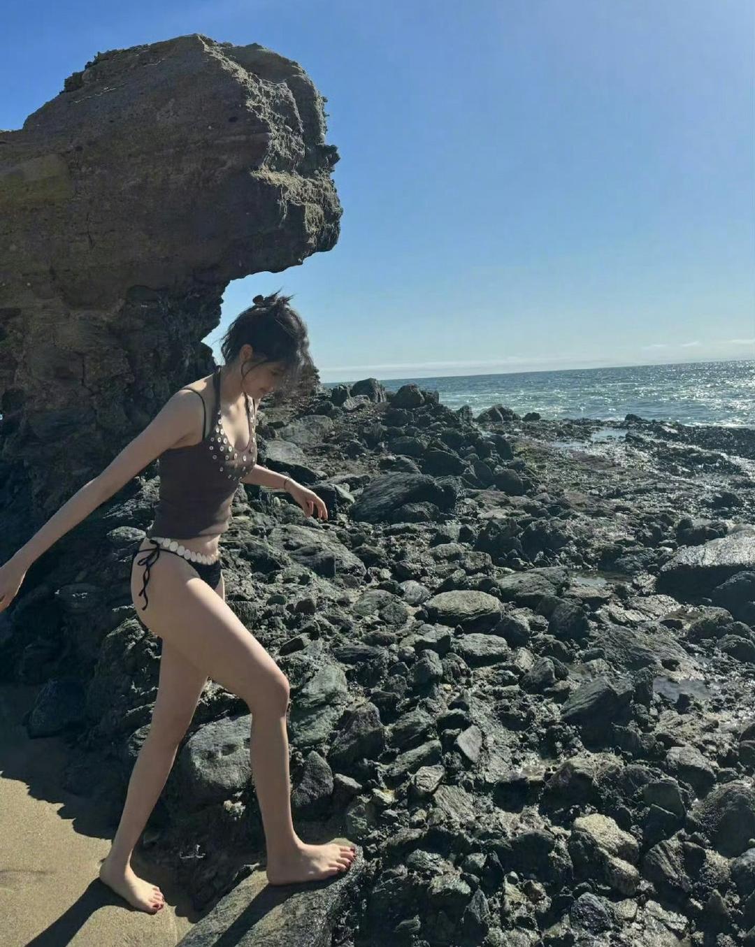 欧阳娜娜是真的喜欢去海边呐,看她在社交平台上发布的照片,很多都是穿着泳装在海边的