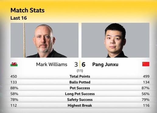 斯诺克:2025英锦赛16进8轮次,中国选手四战仅一胜! 北京时间12月3日至次日凌晨,2025英锦赛正赛结束16进8首个比赛日的争夺,中国球员四场外战仅一胜,最终吴宜泽、斯佳辉和周跃龙皆惨败对手出局,止步16强!仅庞俊旭6-3击败老将马克威廉姆斯,率先晋级八强!庞俊旭的母亲也现场督战,难怪赢得轻松利落(附图)。 比赛过程: 早场时段的比赛,吴宜泽打进粉球拿下首局后,尼尔·罗伯逊打出51、65、75、56、68分连胜五局拿到赛点,又在第7局两度上手完成超分,最终罗伯逊6-1战胜吴宜泽,成为首位晋级八强的球员;同时段2号桌,马克·威廉姆斯打出单杆101、112分,庞俊旭打出单杆76、53、116分。开局庞俊旭一路扩大领先优势,一度4-1领先威廉姆斯,威廉姆斯第六局轰出112分破百连追两局,将比分追到3-4,随后庞俊旭打出单杆51、116分锁定胜局,以6-3的比分战胜威廉姆斯,成为首位晋级八强的中国球员! 凌晨时段,贾德·特鲁姆普打出一杆破百(117)和两杆50+(65、50),斯佳辉打出三杆50+(65、61、58),上半场过后贾德·特鲁姆普3-1领先斯佳辉,最终特鲁姆普6-3战胜斯佳辉,晋级8强;马克·塞尔比打出四杆50+(73、71、75、56),周跃龙打出一杆破百(132)和一杆50+(57),上半场结束双方战成2-2平,中场休息后塞尔比连胜四局拿下比赛,最终6-2战胜周跃龙,晋级8强。 今晚将争夺最后八强的四个名额,焦点加重磅的比赛! 21:00,赵心童和张安达再度带来德比战,丁俊晖再战唐纳森!也是丁俊晖的复仇之战!可曾记得在丁俊晖赢得2019英锦赛冠军后不久,唐纳森在短短13天内,连续三次在三站比赛首轮战胜丁俊晖,三杀丁俊晖,而丁俊晖的一轮游外号也就此臭名远扬! 凌晨时段,希金斯vs墨菲大满贯对决,斯莱瑟vs霍金斯。 赛果: 12月3日 21:00 吴宜泽 1-6 尼尔·罗伯逊 21:00 马克·威廉姆斯 3-6 庞俊旭 凌晨3:00 贾德·特鲁姆普 6-3 斯佳辉 凌晨3:00 马克·塞尔比 6-2 周跃龙 赛程: 12月4日 21:00 张安达 vs 赵心童 21:00 丁俊晖 vs 斯科特·唐纳森 凌晨3:00 约翰·希金斯 vs 肖恩·墨菲 凌晨3:00 巴里·霍金斯 vs 埃利奥特·斯莱塞