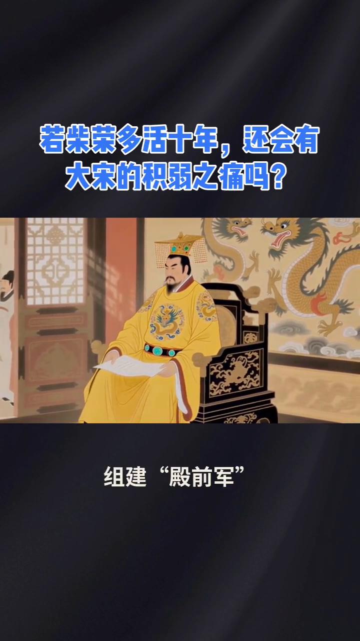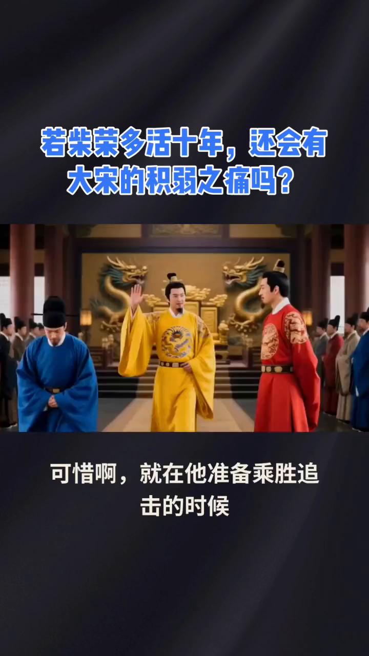 若柴荣多活十年,还会有大宋的积弱之痛吗? 大家好,今天来聊一位超可惜的历史人物,后周世宗柴荣。要是他多活十年,中国历史说不定就得改写,宋朝积弱之痛的局面可能根本不会出现。 柴荣可是五代十国时期的一代雄主,他出身邢州望族,年少时家道中落,为了生活去投奔姑母柴氏,后来被姑父郭威收为养子,跟着郭威南征北战,积累了丰富的军事和政治经验。郭威建立后周后,柴荣凭借自己的才能一步步走上权力巅峰。 954年,郭威驾崩,柴荣登基称帝,史称周世宗。柴荣刚一上台就面临着内忧外患的严峻局面,他大刀阔斧地推行改革,整顿吏治,严惩贪官,重用贤能,改革军事,淘汰老弱,建立精锐的"殿前军",让后周军队战斗力大幅提升,还推行"均田制",减轻百姓负担,恢复农业生产,使国力迅速增强。 在军事上,柴荣更是战绩辉煌。高平之战,他力排众议,御驾亲征,面对北汉和契丹的联军,他亲自披甲上阵,冒死督战,大败敌军,斩杀北汉骁将张元徽,让契丹军望风而逃。此战之后,柴荣整编禁军,组建"殿前军",为北宋禁军制度奠定了基础。此后,他又三次亲征南唐,迫使南唐割让淮南十四州,去帝号,只称江南国主。 959年,柴荣北伐辽朝,仅用四十二天就兵不血刃地连收三关三州,共十七县,兵锋直指幽州。可惜就在他准备乘胜追击的时候,突然患病,不得不班师回朝,不久后便英年早逝,年仅三十九岁。柴荣的突然离世,让他的统一大业夏然而止。 他死后,后周政权落入赵匡胤手中,赵匡胤建立宋朝,但宋朝在军事上却陷入了积弱的困境,与辽、西夏的战争中屡屡失利,只能签订诸多条约,以国土、岁币等换取苟安。 柴荣在位时,军事改革成效显著,"殿前军"战斗力超强,而且他本人军事才能卓越,善于用兵。要是他能多活十年,继续北伐,很可能就能从契丹手中夺回幽云十六州。如果柴荣能收复幽云十六州,宋朝的国防形势就会大大改善,就不会在军事上那么被动。而且柴荣重视军事,他的国防政策肯定不会像宋朝后来那样保守。 宋朝为了加强中央集权,采取了一系列削弱武将权力的措施,导致军队战斗力下降。而柴荣则会继续强化军队建设,培养更多优秀的军事人才,打造一支强大的军队。可惜历史没有如果,柴荣的英年早逝是中国历史的一大遗憾,但他的雄才大略和改革精神却永远值得我们铭记。 家人们,你们觉得如果柴荣多活十年,历史会怎样发展?快来评论区聊聊。