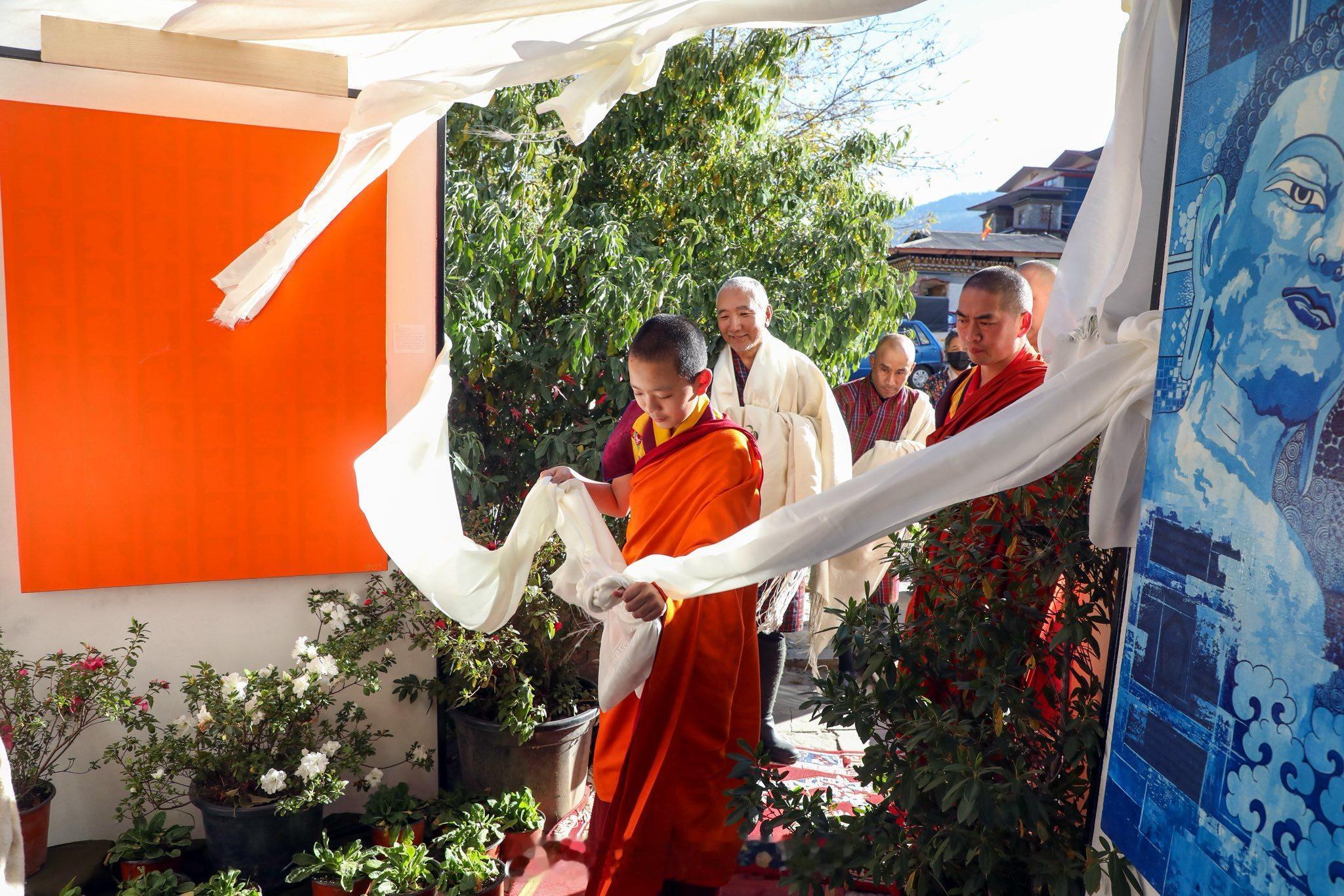 王室王室不丹王室 2025年11月28日,二公主家的小活佛参观展览,这个艺术展是