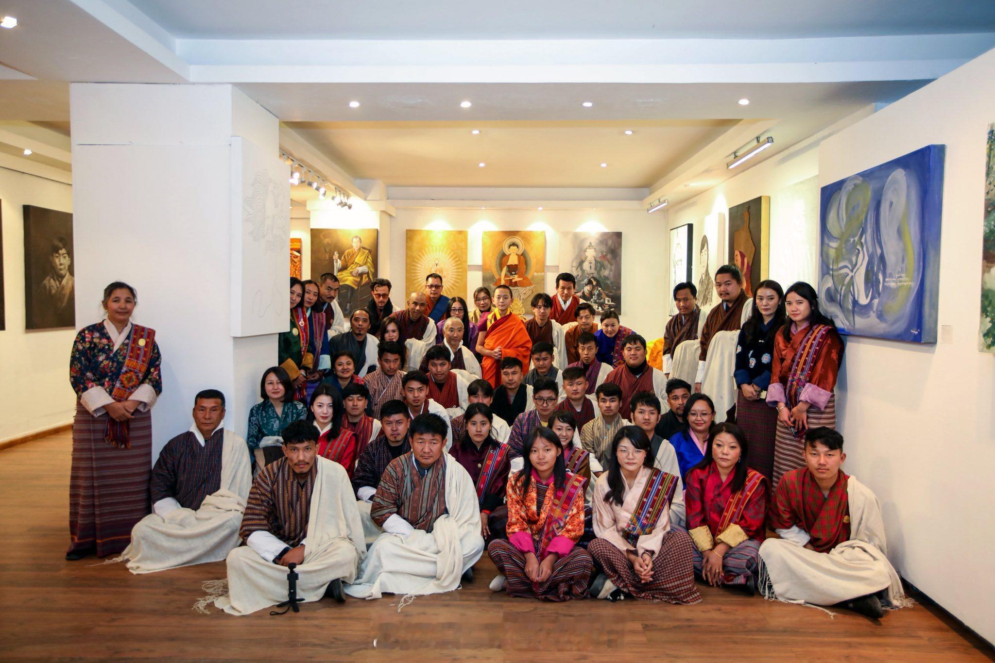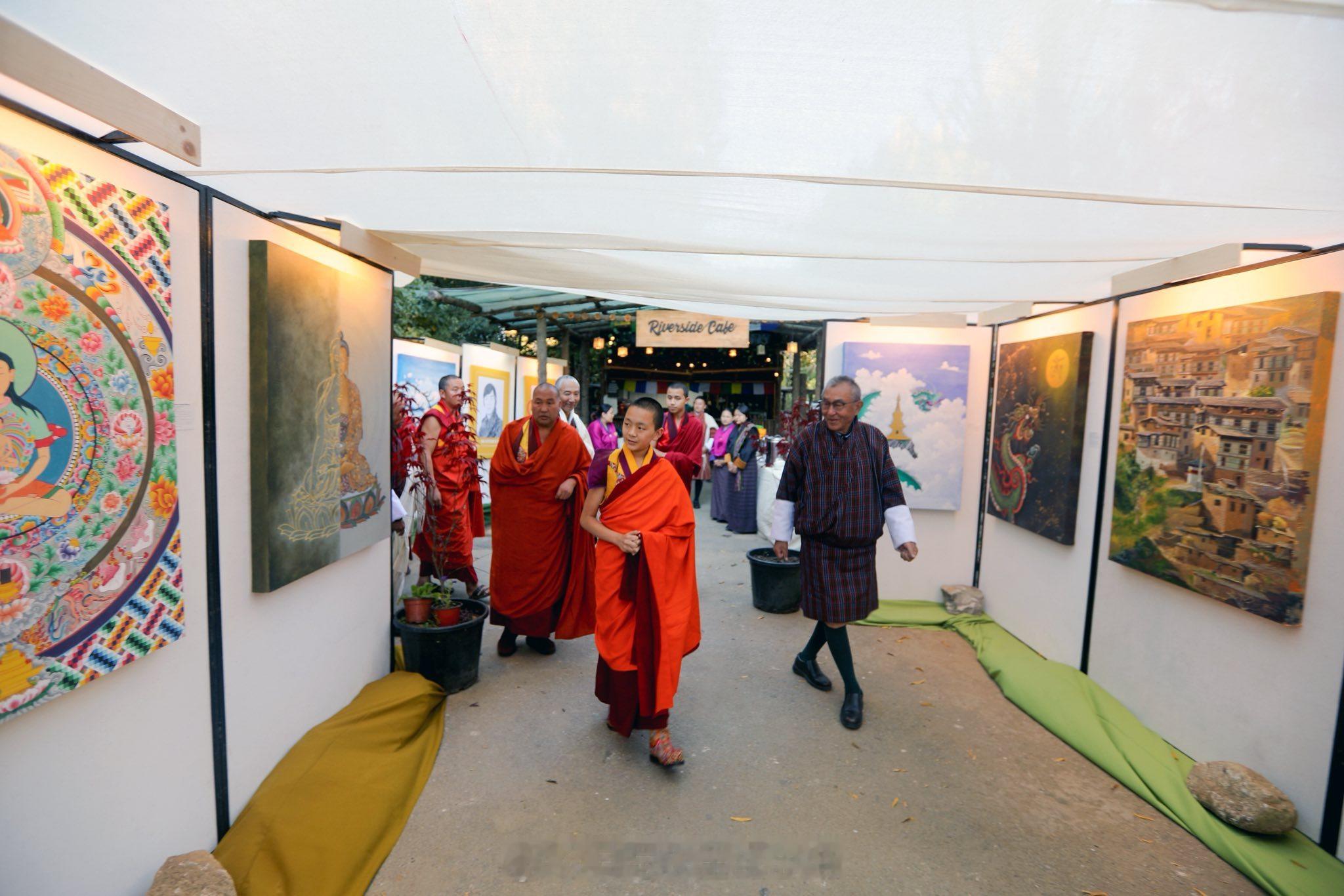 王室王室不丹王室 2025年11月28日,二公主家的小活佛参观展览,这个艺术展是为了庆祝县长爹70岁生日举办的。