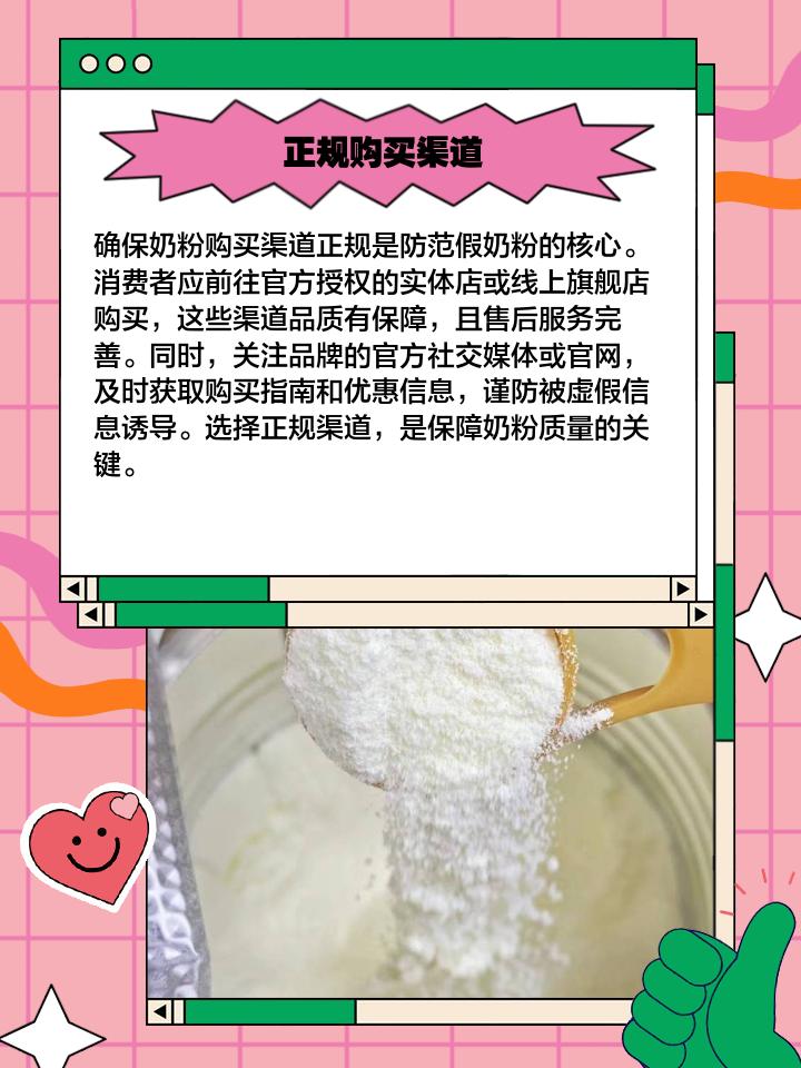 1. 锁定正规购买渠道:优先选品牌官方旗舰店、大型商超和授权母婴店,避开无资质微商、个人代购及低价促销的非正规直播间。警惕“口岸直发”“买赠大额礼品”等话术,这类多是伪造物流的假货。线上购买还可通过品牌官网核实商家是否为授权经销商。 2. 仔细核验包装与资质:包装上,国产奶粉要有“SC+14位数字”的生产许可证号,婴幼儿奶粉需有“国食注字YP+8位数字”编号,进口奶粉必须有完整中文标签;喷码的生产日期和批号要清晰且不易擦除,劣质喷码轻刮就掉的需警惕。同时可扫码罐身溯源码,若跳转非官网或无信息,大概率是假货。 3. 开罐后做感官与简易测试:看颜色,真奶粉是自然乳黄色,假奶粉常异常纯白或带杂质;闻气味,真奶粉奶香清淡自然,假奶粉多有刺鼻香精味。冲调时,真奶粉需搅拌溶解,假奶粉可能秒溶或结块沉淀。还能用碘酒测试,滴酒后变蓝黑说明含淀粉,大概率是假货。 4. 留存凭证做好维权准备:购买时保留小票、发票或线上订单截图。一旦怀疑是假货,立即停用并封存奶粉,拨打12315举报,若造成健康问题,还需留存就医诊断证明,以便后续追责索赔。