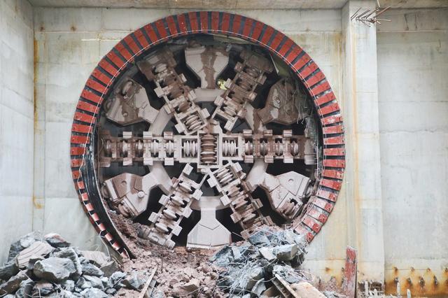“电化先锋号”TBM刀盘顺利破洞而出。丁玲摄