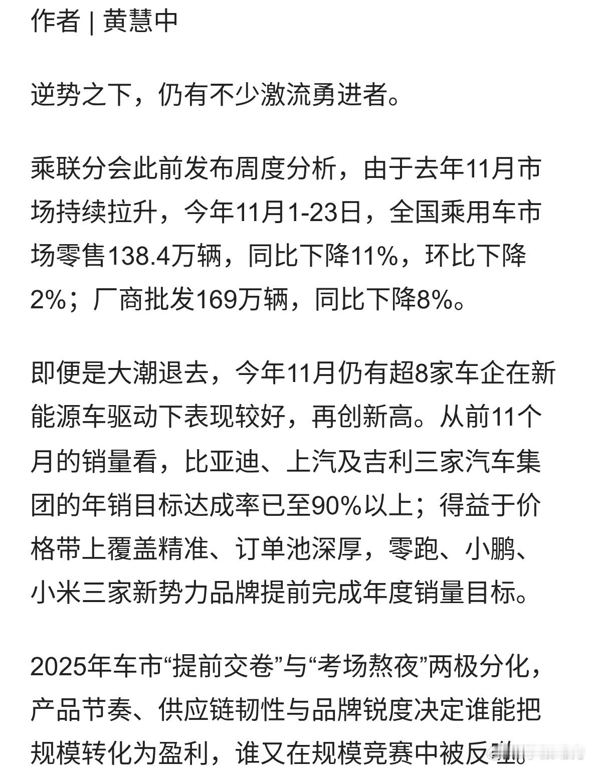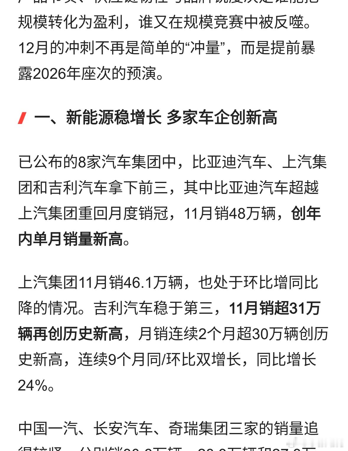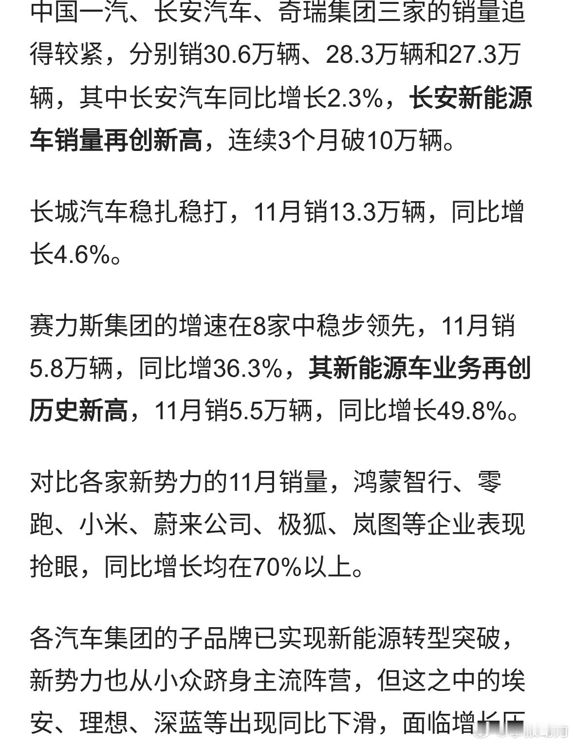 11月车市整体下滑 吉利、赛力斯、零跑等仍创历史新高