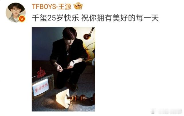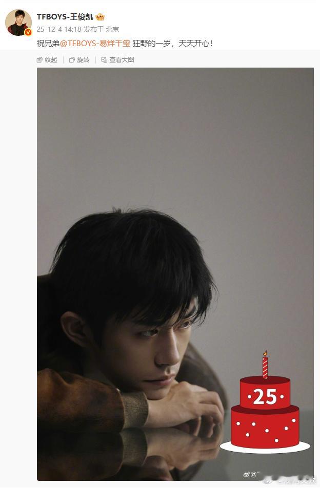 王源王俊凯为易烊千玺庆生今日,晒出蛋糕图,发文“二十五🎨”,也都送上了庆生祝福~