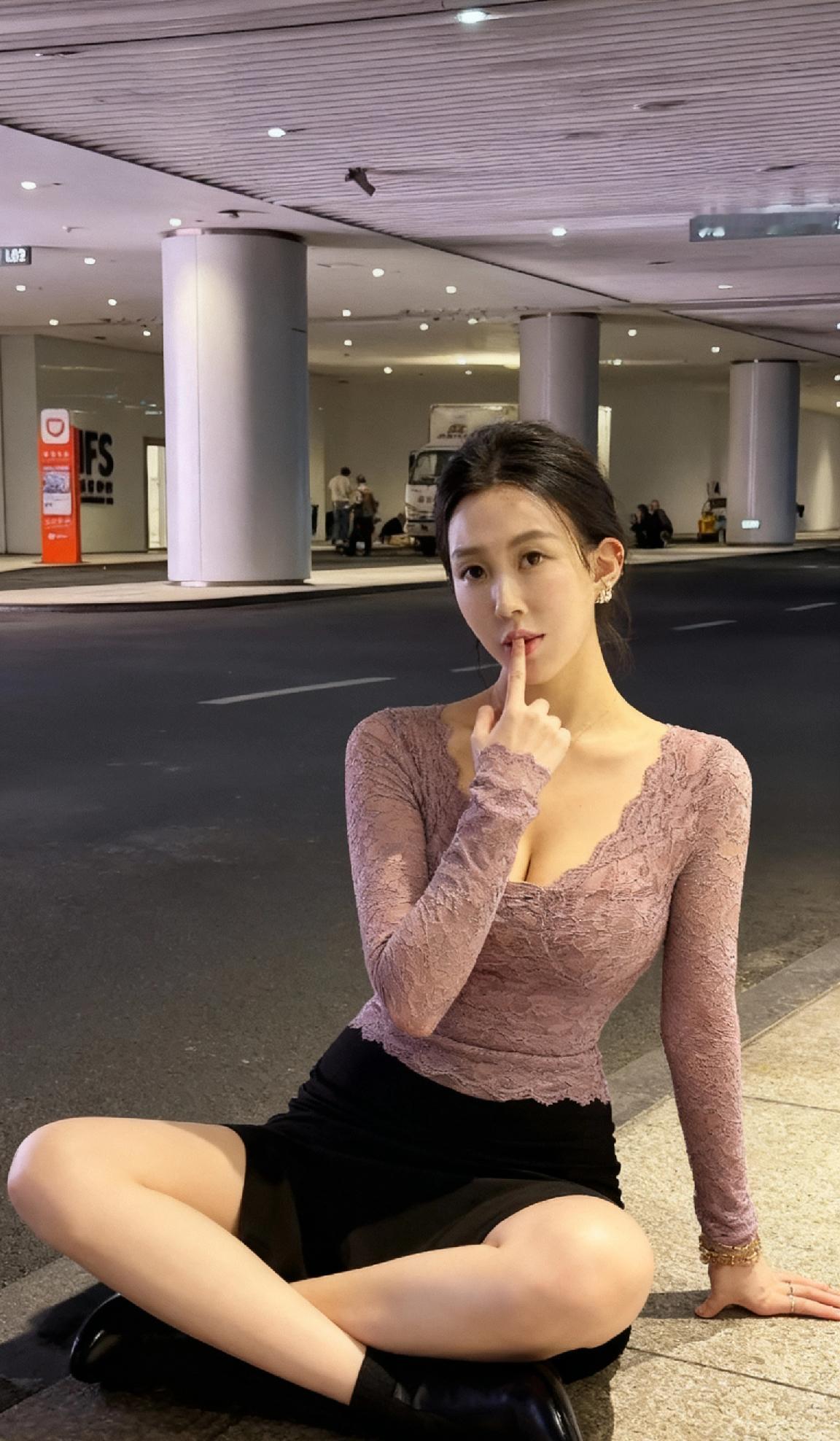 她身着浅紫蕾丝上衣,领口花纹精致如雕花,深V设计衬出优雅锁骨。乌发松松束起,碎发轻拂颈侧,耳坠似星子闪烁。黑裙勾勒纤腰,斜挎的链条包添了都市感。站在IFS的现代空间里,她像从画中走来的雅致佳人,温柔里裹着知性,矜持中藏着眼波流转的风情,每一处细节都写着“优雅”二字。轻熟蕾丝风穿搭 温柔风蕾丝上衣 气质黑色蕾丝衫 温柔蕾丝上衣 气质蕾丝衫女 紫色蕾丝 简约蕾丝上衣 轻奢蕾丝上衣 美女人像群