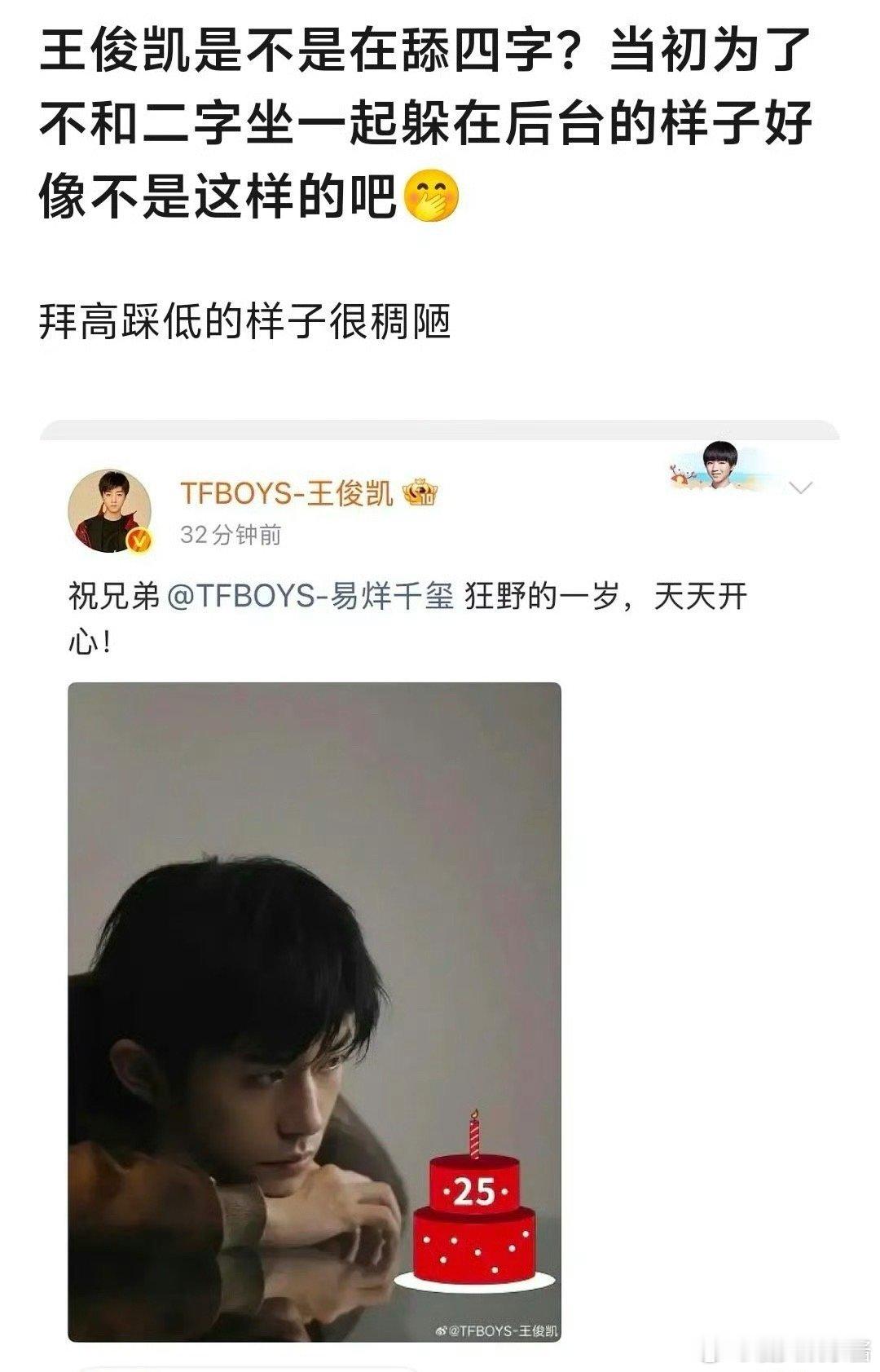王源王俊凯为易烊千玺庆生王俊凯给易烊千玺的生日祝福迟到了几天,网友怎么都在热议