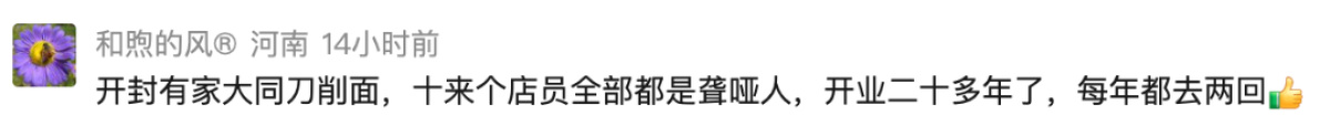 “真好,温暖人心!”“泪目了”“无声面馆爱滔滔。”“没有低俗卖惨,自立自强、自重自爱用、自己双手劳动挣钱!”“无声似有声,最动人的声音也未必需要亲耳听见。”评论区内网友纷纷点赞,有人希望这样有爱的面馆越来越多,有人希望能有更多的残障人士被看见,能从从容容地出行、工作和生活,真诚祝愿这些残障人士有更美好的未来,真正实现自身价值。