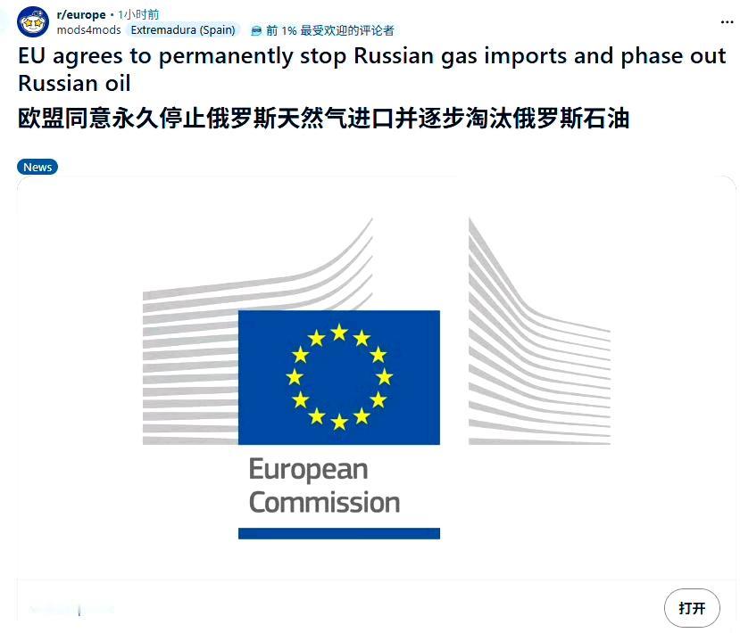 当地时间2025年12月3日,欧盟理事会和欧洲议会达成临时协议,明确将永久停止俄罗斯天然气进口,并在2027年底前逐步淘汰俄罗斯石油进口。看到这样的新闻,我有点点同情欧洲人了,不由地感叹:冯德莱恩和吕特真的把欧洲带进阴沟了,就算短期内俄乌冲突停了,掉进阴沟的欧洲起码十年都爬不出来。幸好匈牙利和斯洛伐克保持了自己的独立性,强烈反对这项禁令,他们估计也不会执行这项禁令。