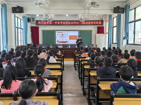 为大力弘扬宪法精神,维护宪法权威,推动宪法知识深入人心,近日,怒江州福贡县子里甲边境派出所依托“向日葵”普法工作品牌,深入辖区校园开展宪法宣传进校园活动,以精准化、多样化的普法举措,为青少年健康成长筑牢法治屏障。