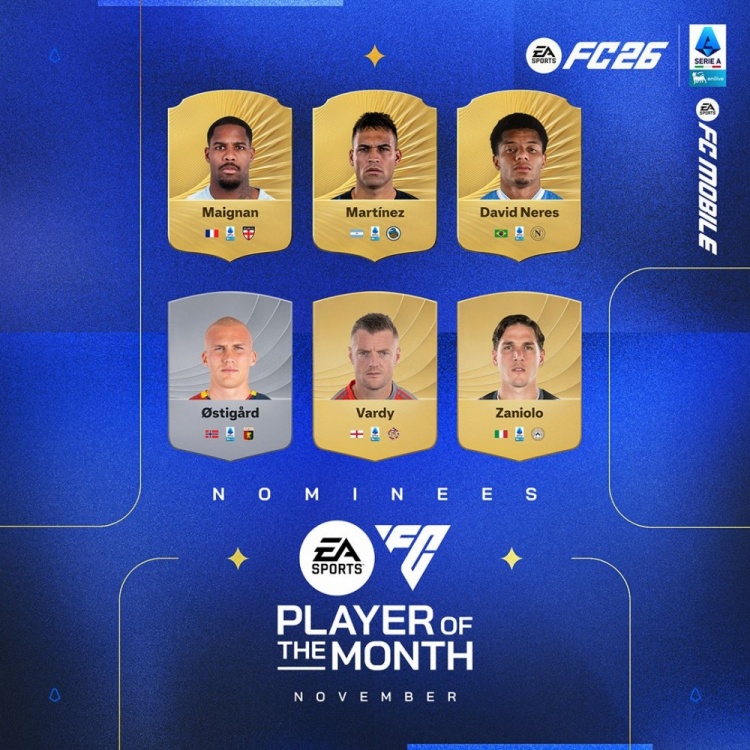 意甲11月最佳球员候选:迈尼昂、劳塔罗、瓦尔迪、扎尼奥洛在列