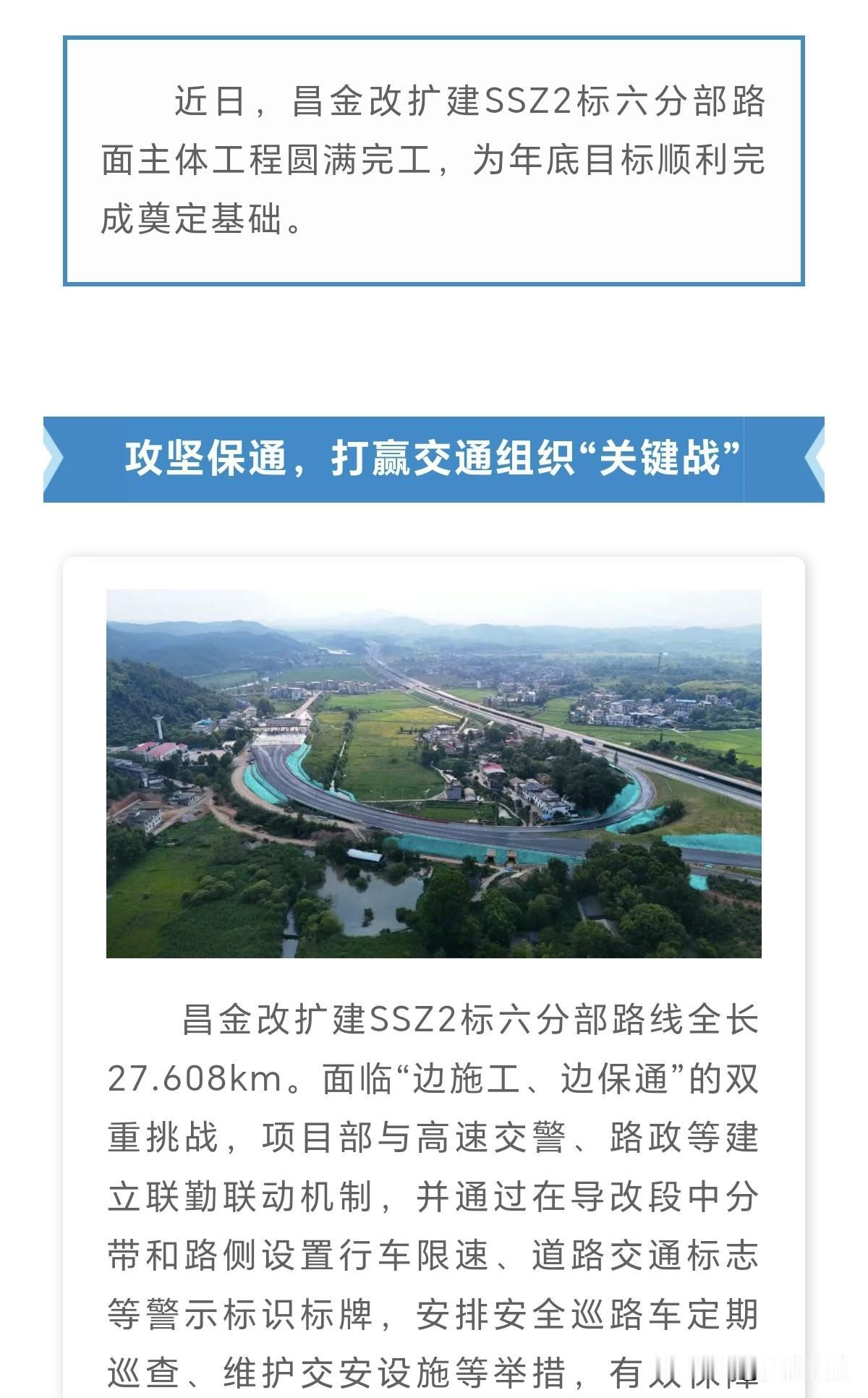 好消息,江西沪昆高速昌金改扩建段又一标段圆满完成。 江西的交通建设最近好消息