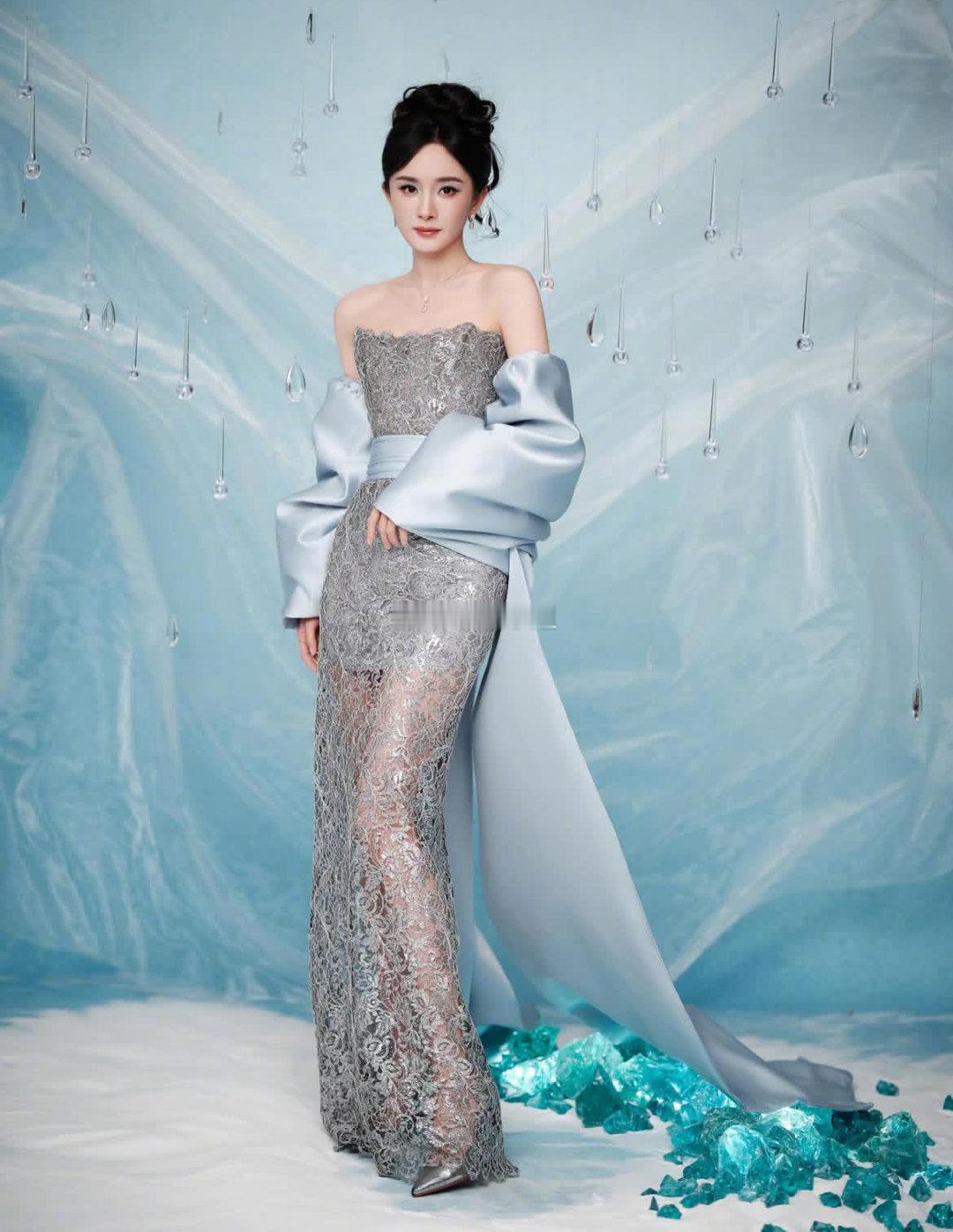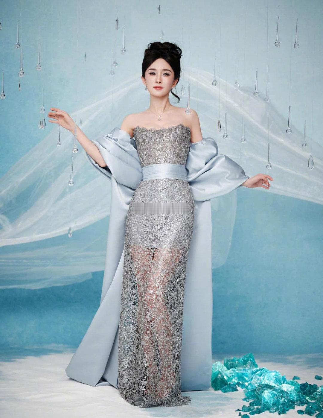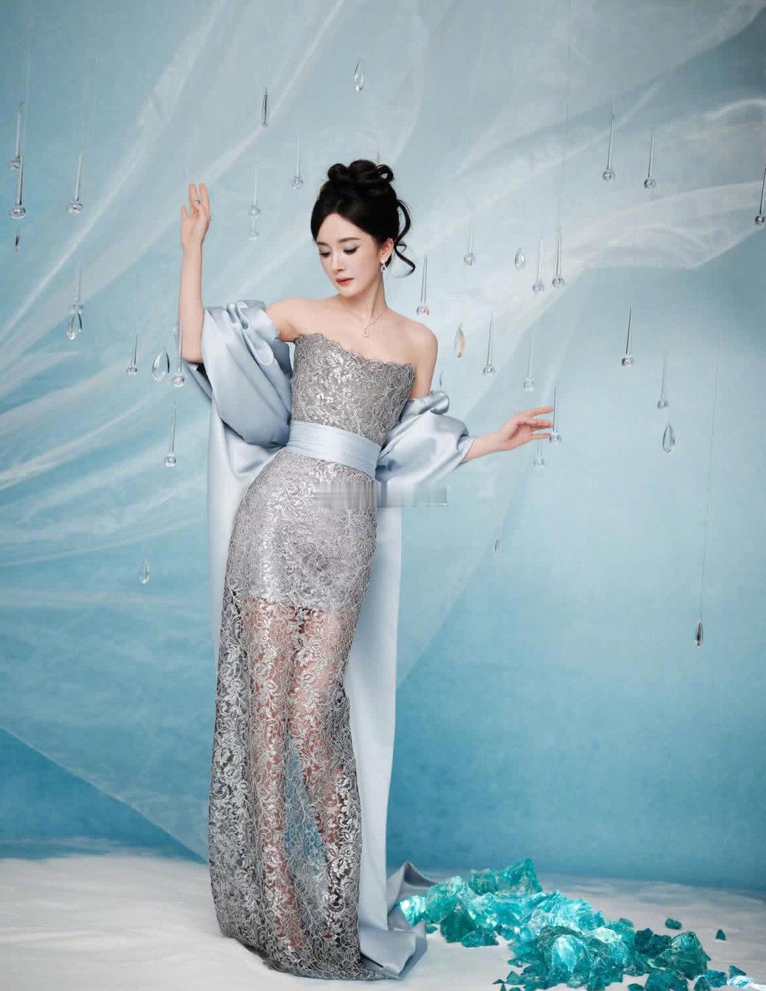 杨幂亮相线下商务活动🦋服装:AADNEVIK Spring 2026珠宝:萧邦钻石系列鞋子:Christian Louboutin银色金属蕾丝镂空裙,外搭露肩冰蓝色丝绸斗篷,立体剪裁与垂坠感面料演绎整体奢华感。杨幂蓝色镂空裙杨幂