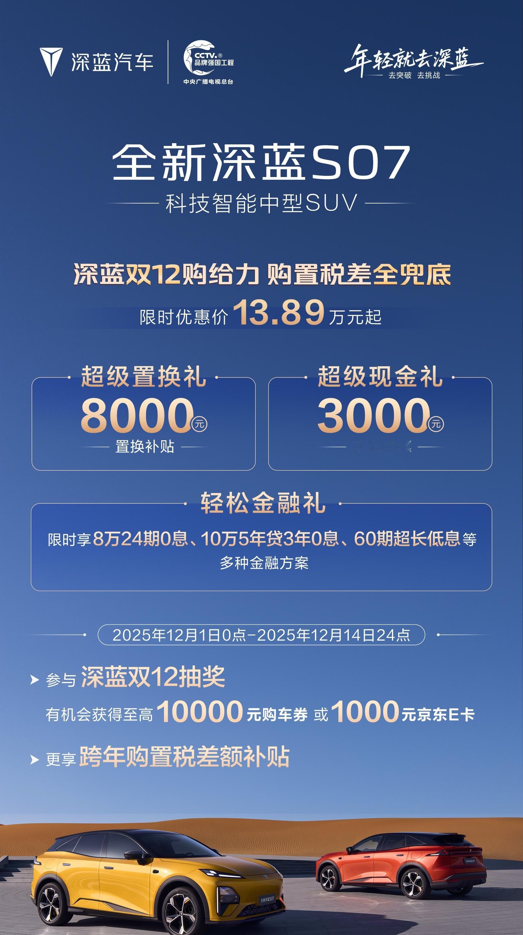 即日起至12月31日,锁单深蓝全系车型,并在2026年2月14日前完成提车,就能享受跨年购置税补贴!哪怕因为跨年交付导致购置税有变化,也不用担心差额——深蓝给你现金补上,放心过好年,轻松开新年深蓝汽车发布购置税补贴方案