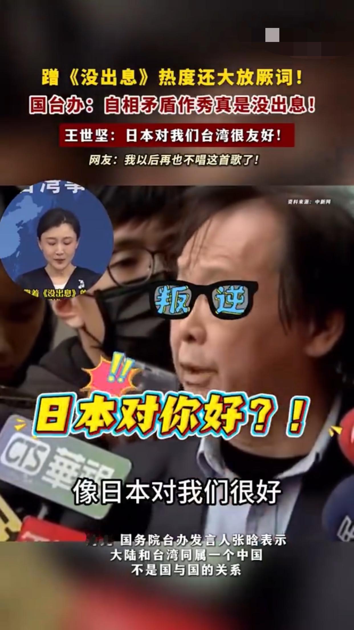 台湾王世坚表示,大陆骂他“没出息”,他觉得真的是莫名其妙,有点不礼貌了,日本对台