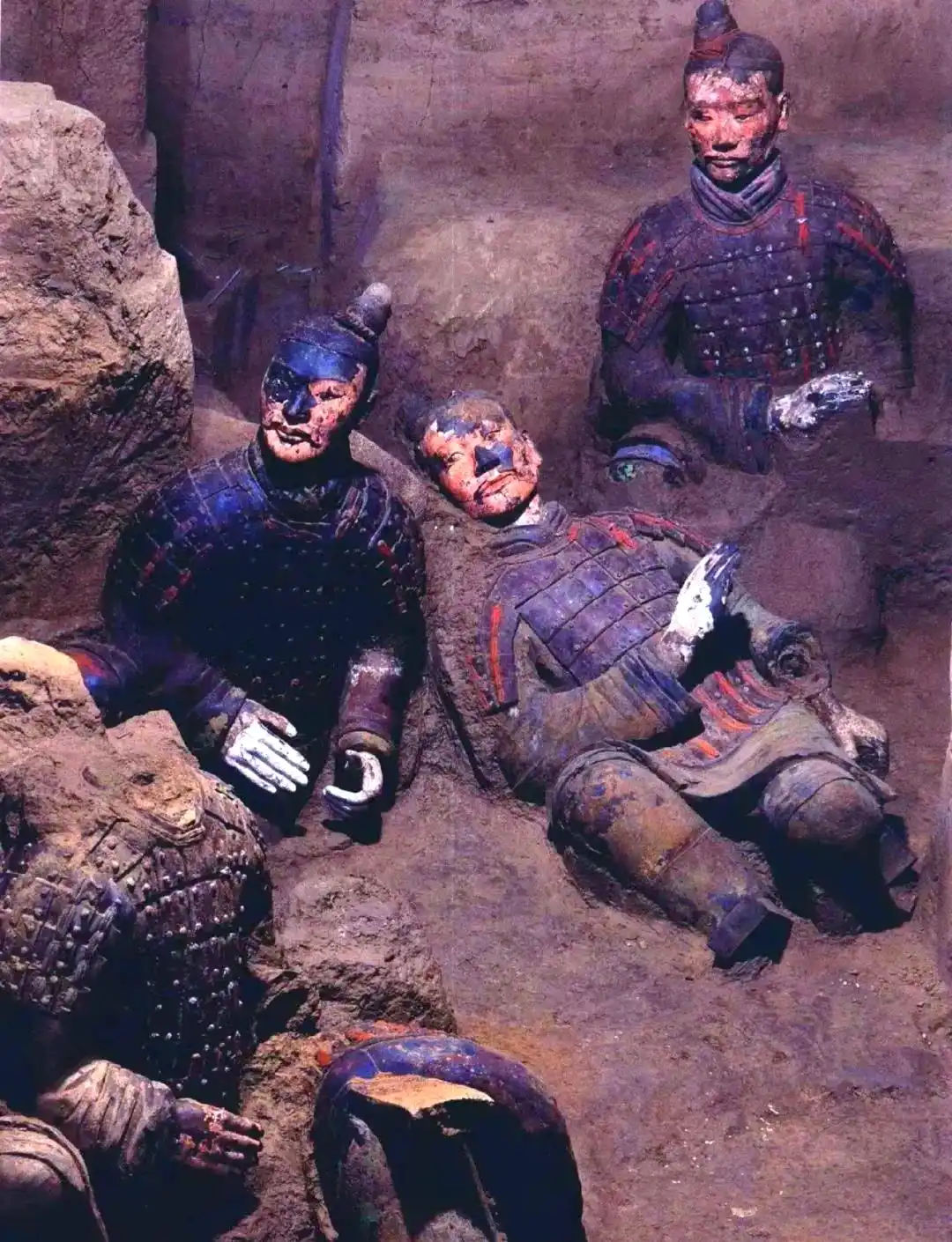AI唤醒千年秦俑彩衣我的天!原来兵马俑刚出土时这么炫!朱红战甲配墨色纹路,连发丝