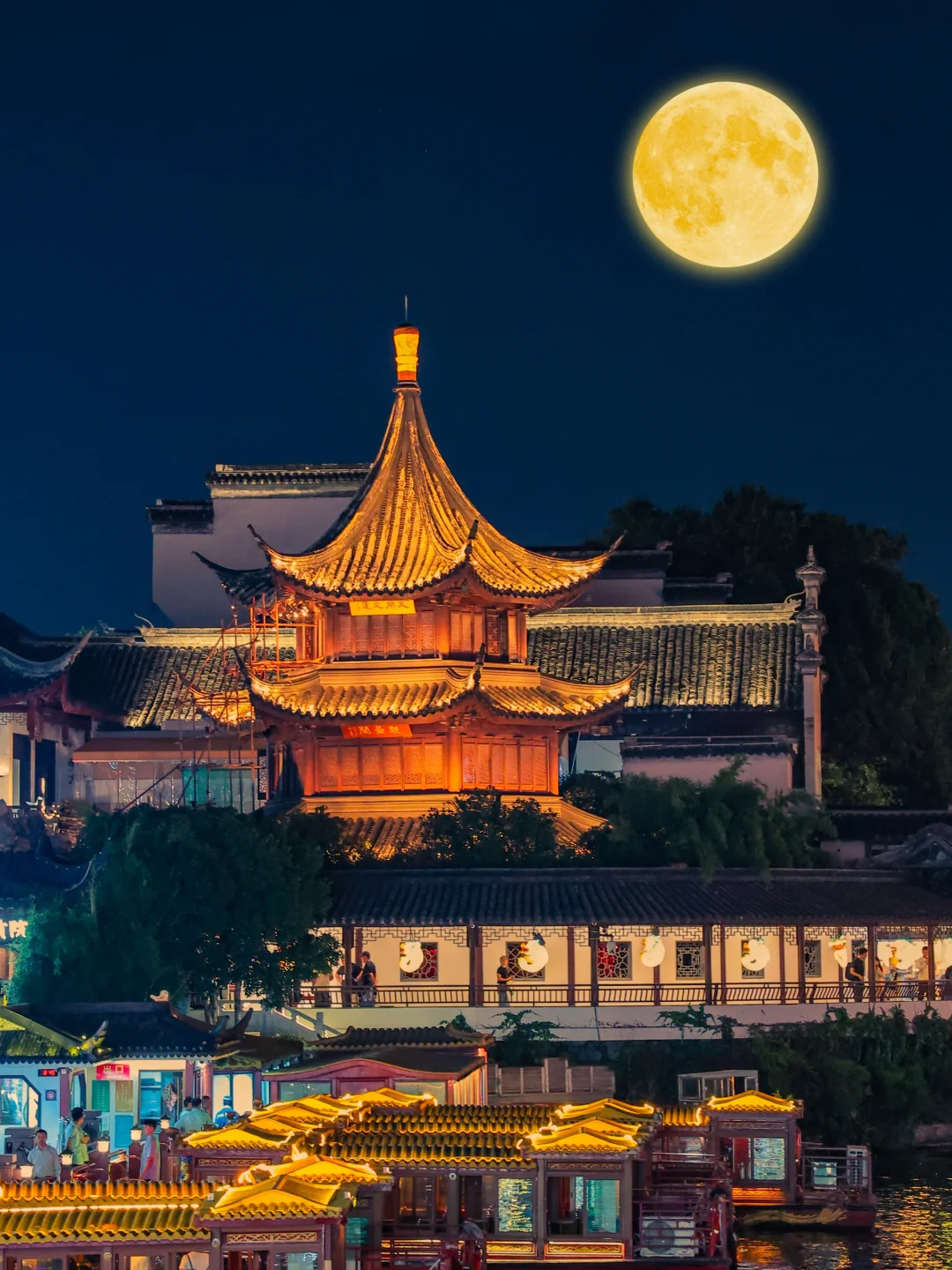 [一R]夫子庙:坐落在秦淮河畔,夜幕降临灯光璀璨,古建筑群在灯光的映照下更显古朴典雅,仿佛诉说着历史的沧桑和文化的厚重!感受到来自金陵的厚重与浪漫!